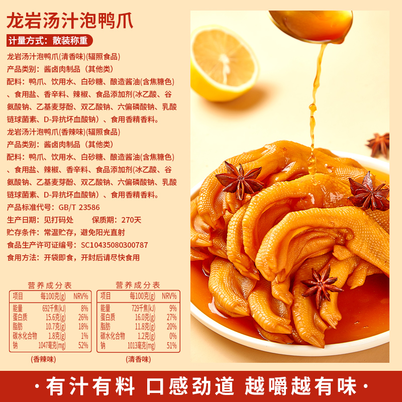- ¥19.90 带汤鸭爪、清香味,【店长推荐】8只装