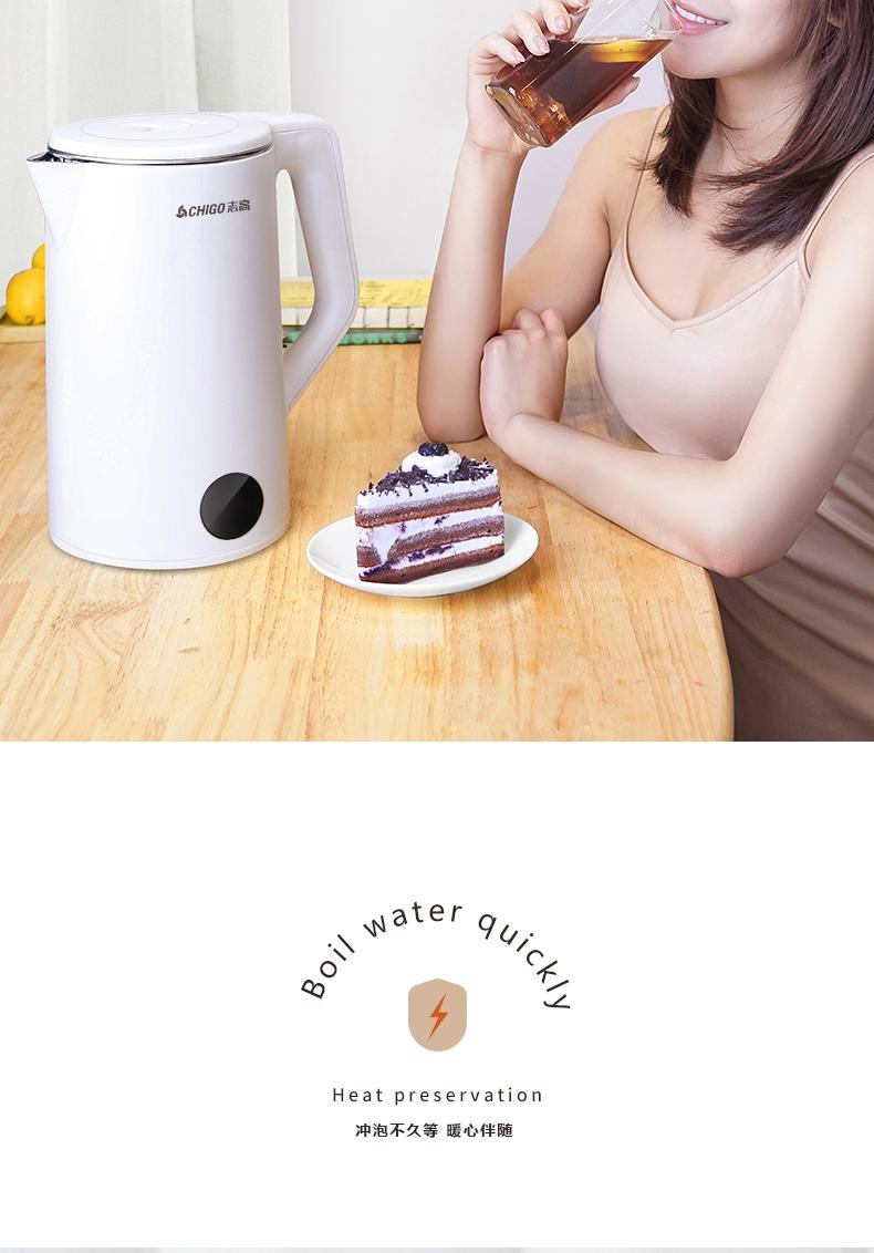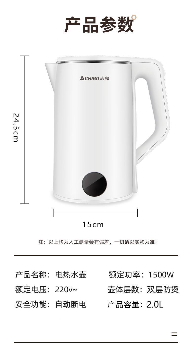 Chigo/志高电水壶热水壶自动断电防干烧双层防烫家用大容量烧水壶