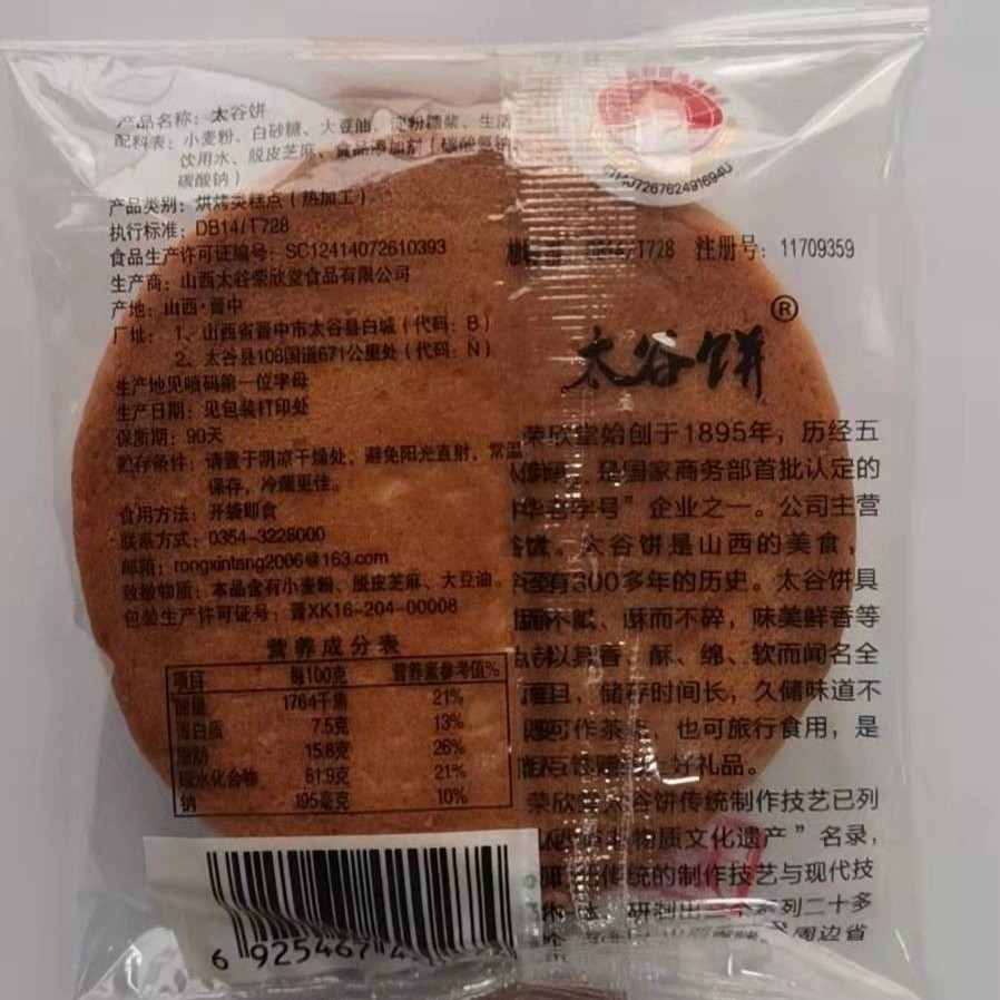 荣欣堂 【中华老字号】-山西特产点心老式手工糕点零食-太谷饼,抖音销量合计已超10万,口感好,适合大众口味,休闲小零食的佳选。