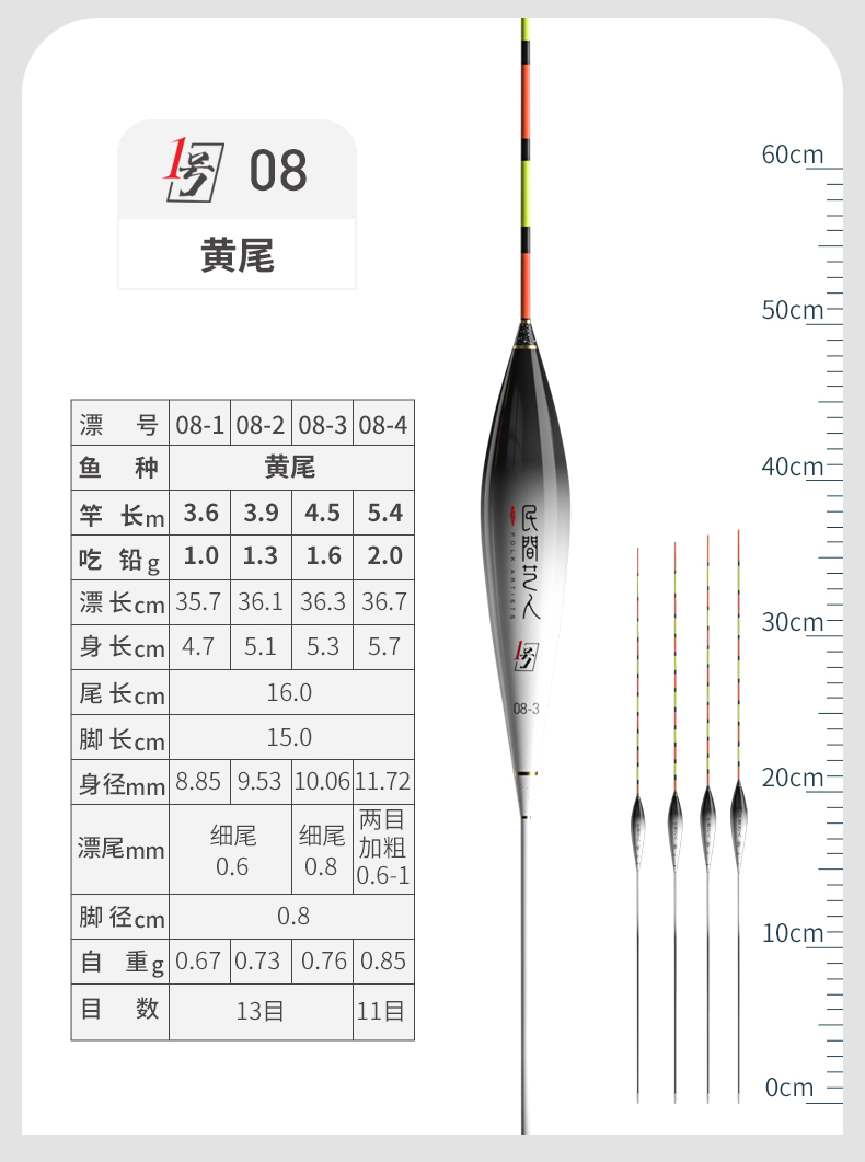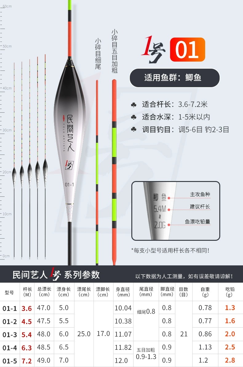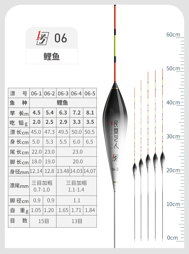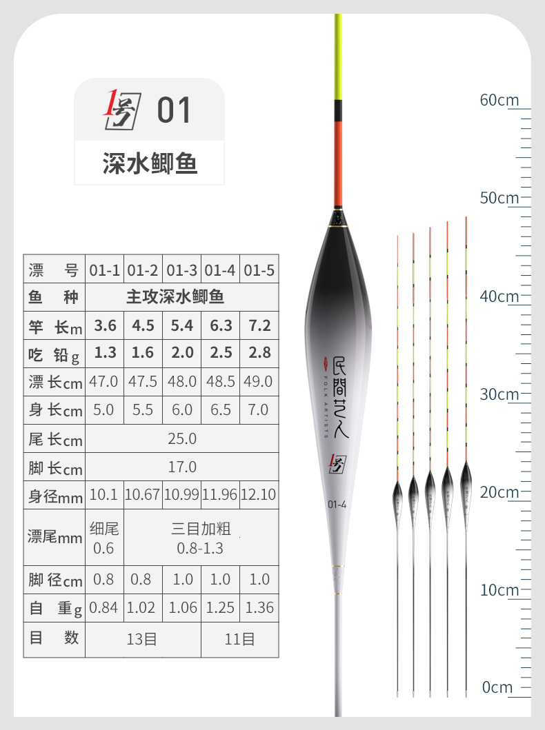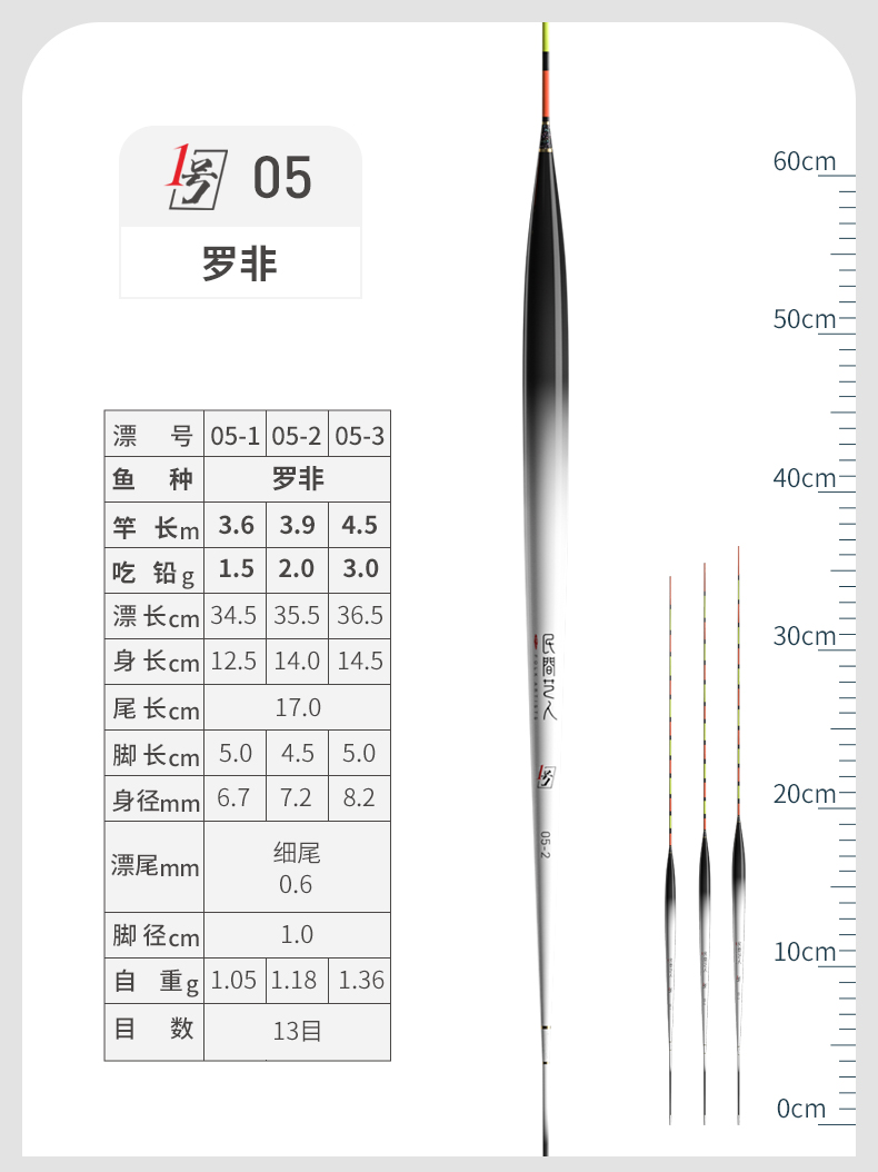 - ¥25.0006-4 大鲫大鲤 长身型50CM 13目3目加粗尾3.3g