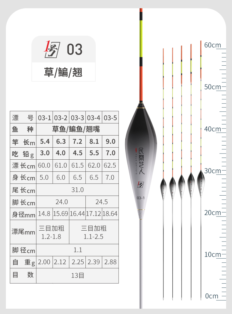 - ¥25.0003-1 草/鳊/翘 短身型60CM 13目3目加粗尾3.0g