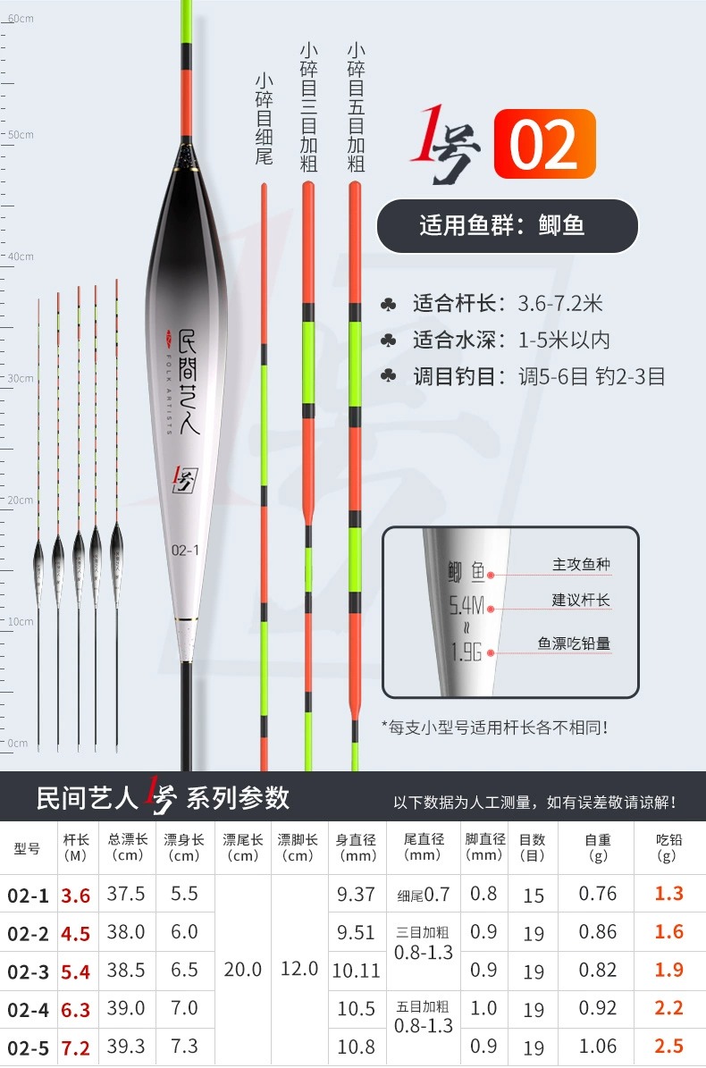 - ¥25.0002-2 鲫鱼综合 长身型38CM 15目2目加粗尾1.6g