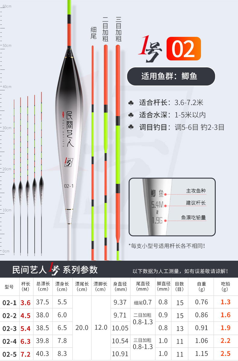 - ¥25.0006-5 大鲫大鲤 长身型50.5CM 13目3目加粗尾3.5g