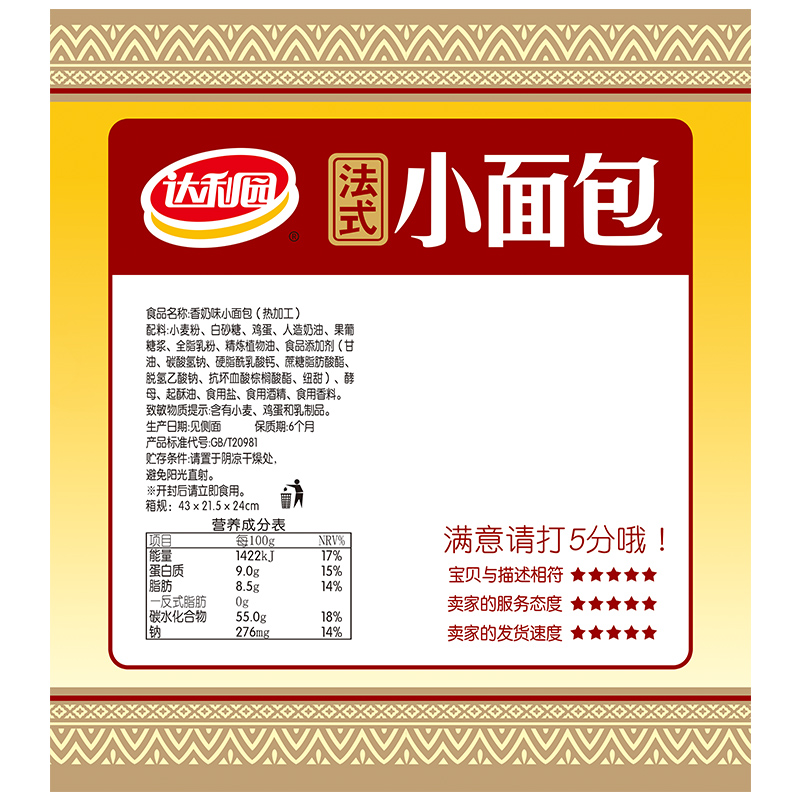 达利园小面包法式软面包早餐蓬松奶香香软软绵