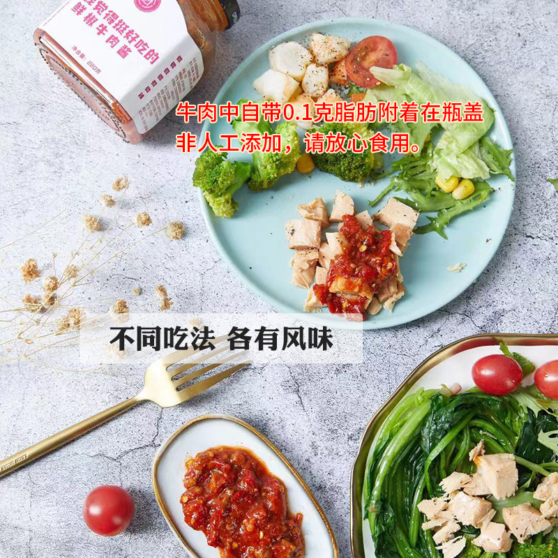 大颗粒有嚼劲,每一勺都是真牛肉、真鲜椒。严选原料,粒粒分明,真材实料。