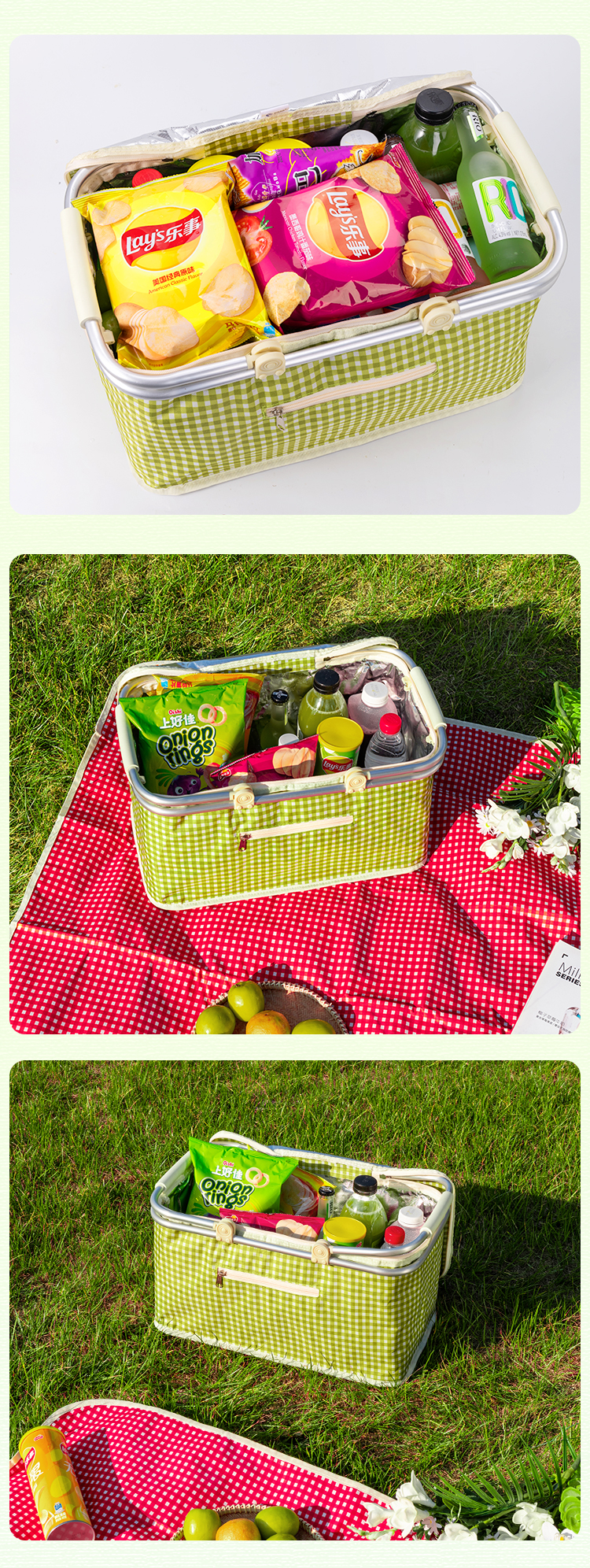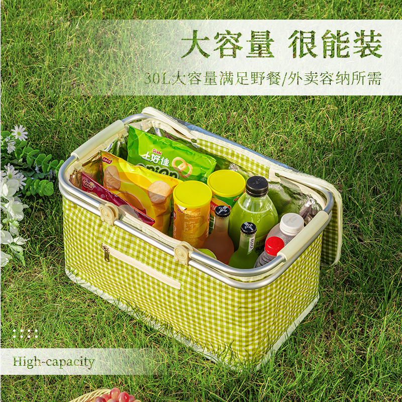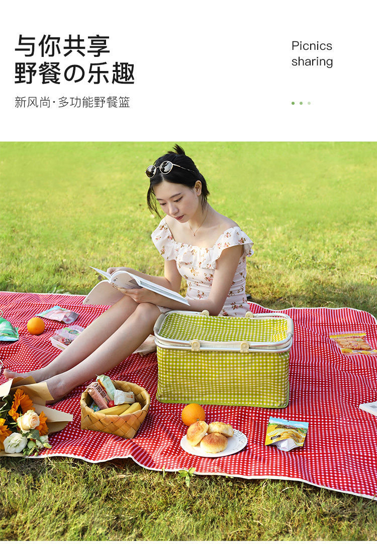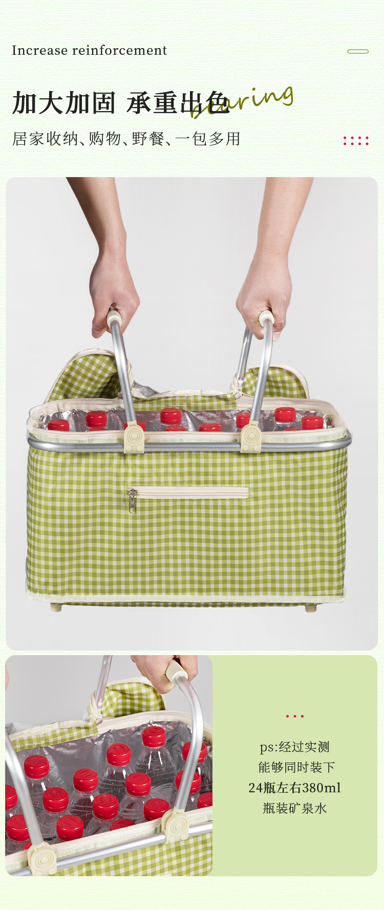 - ¥49.90【升级款】绿色小格子野餐篮30升47*28*23公分(送冰袋5个)