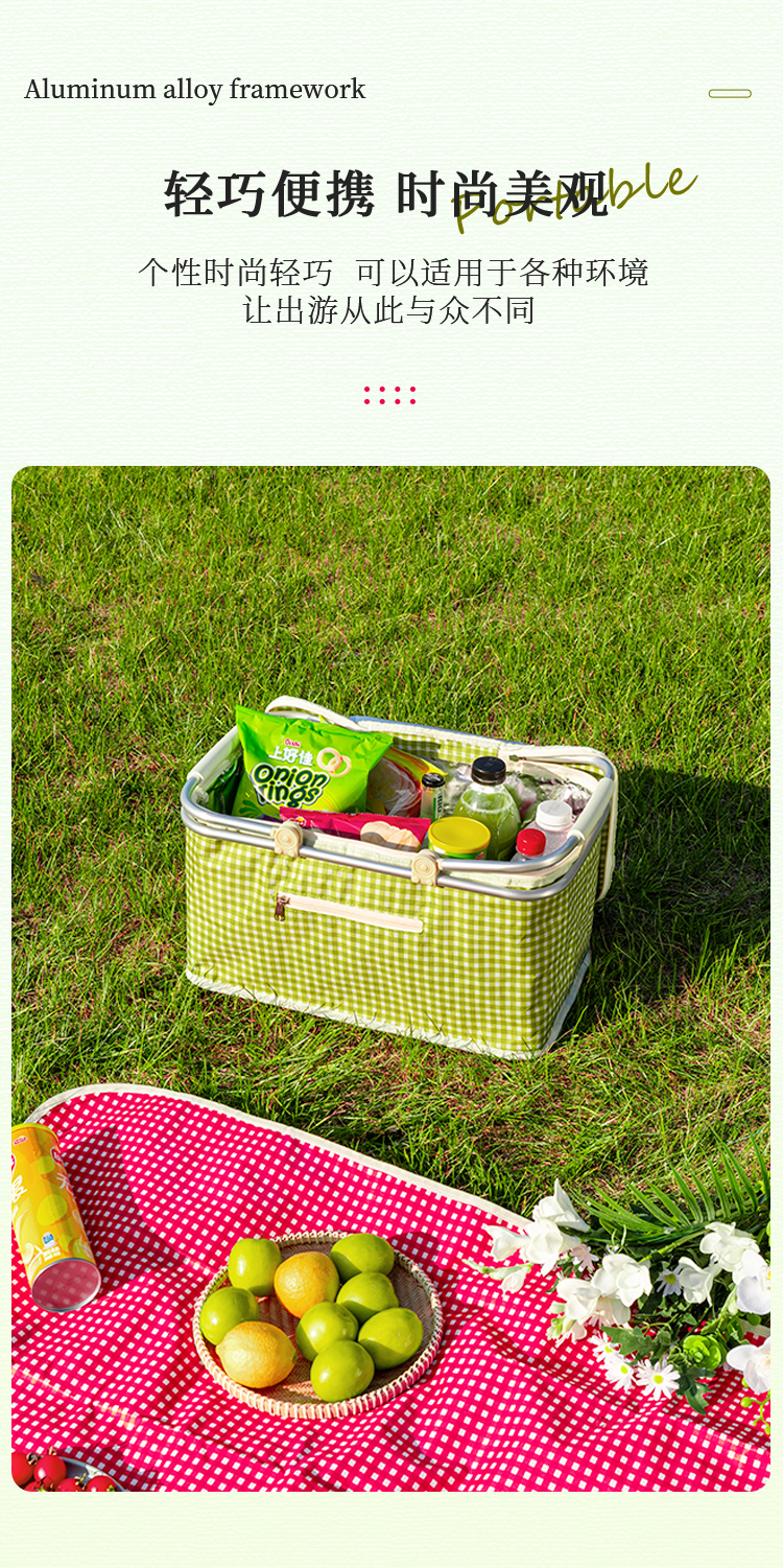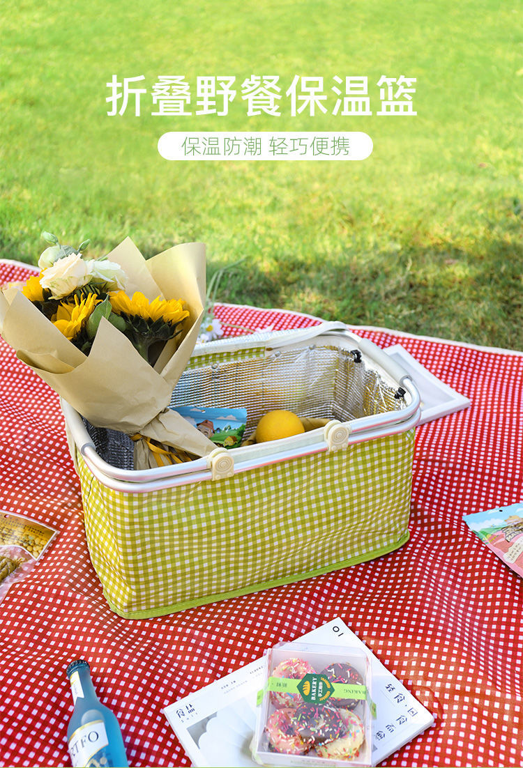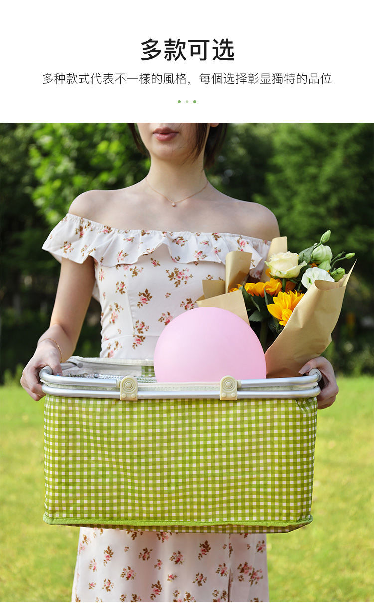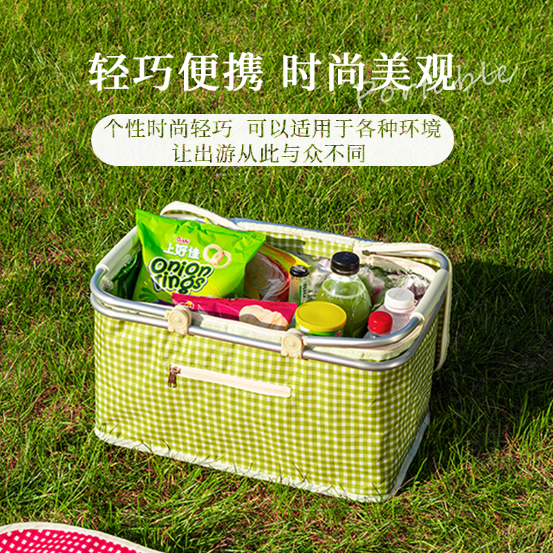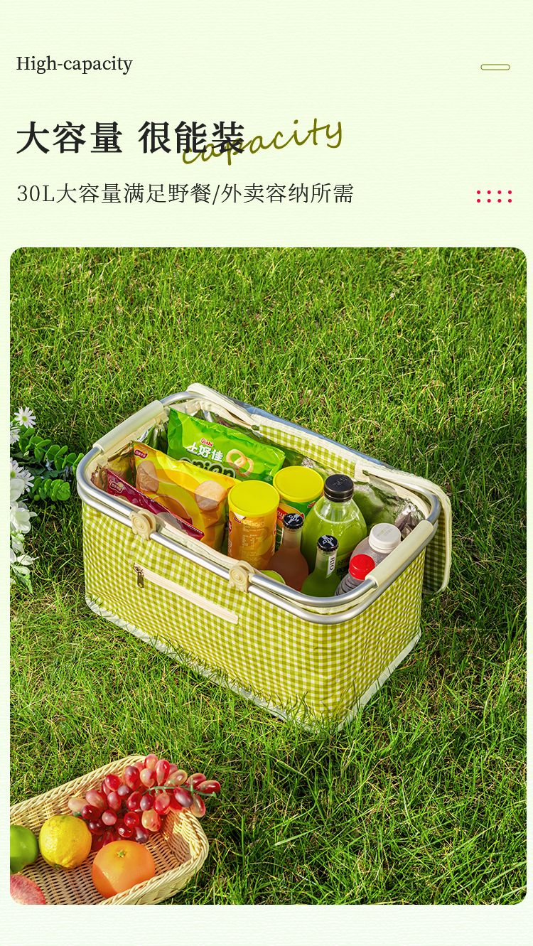 - ¥49.90【升级款】绿色小格子野餐篮30升47*28*23公分(送冰袋5个)
