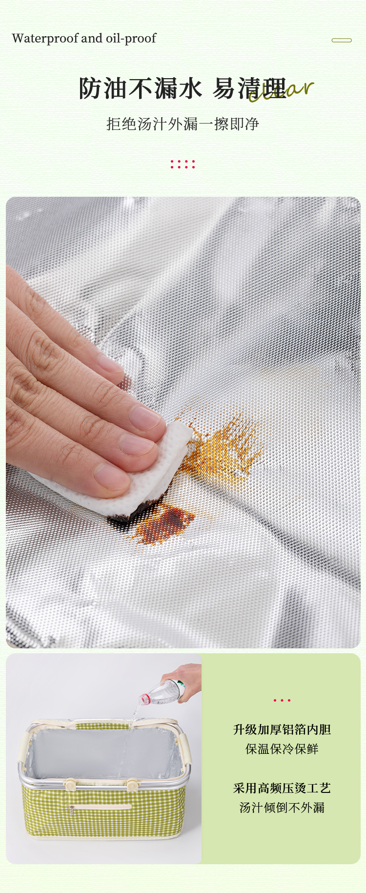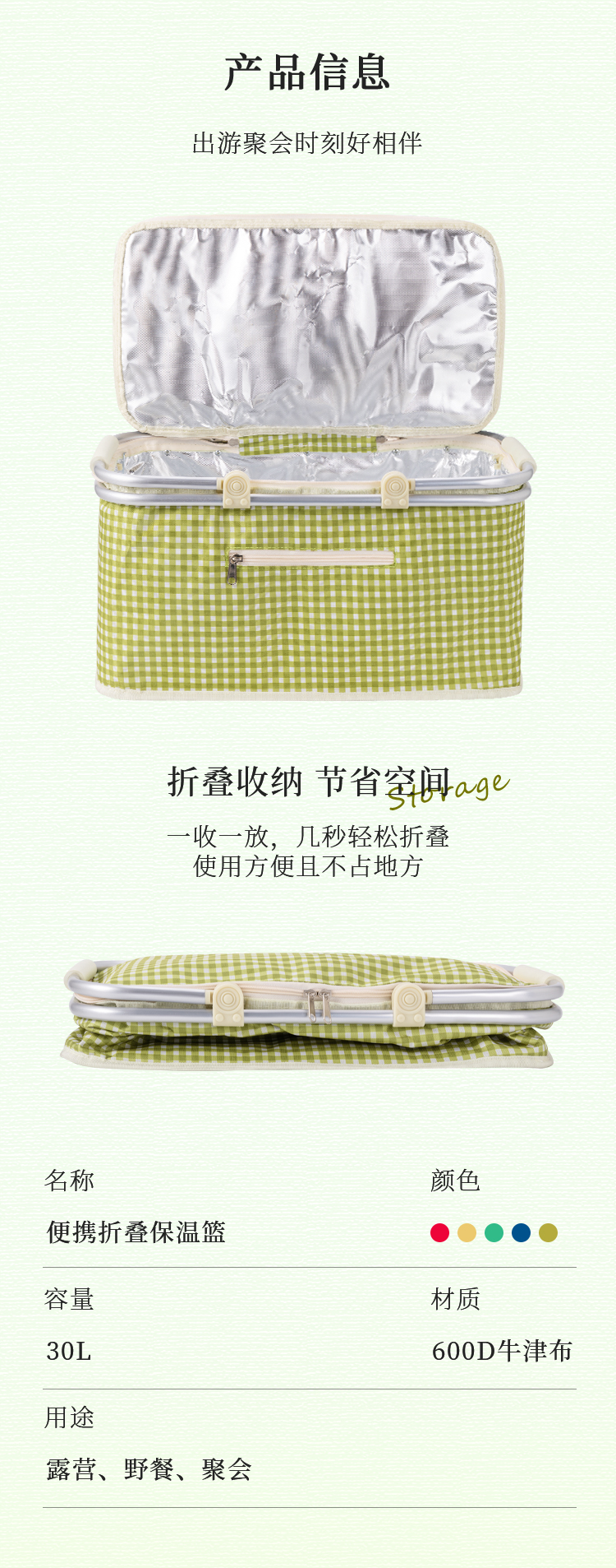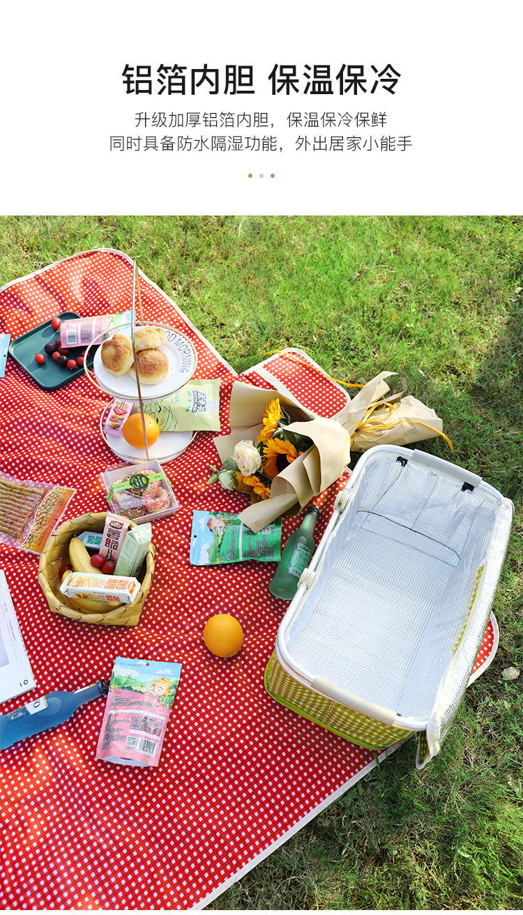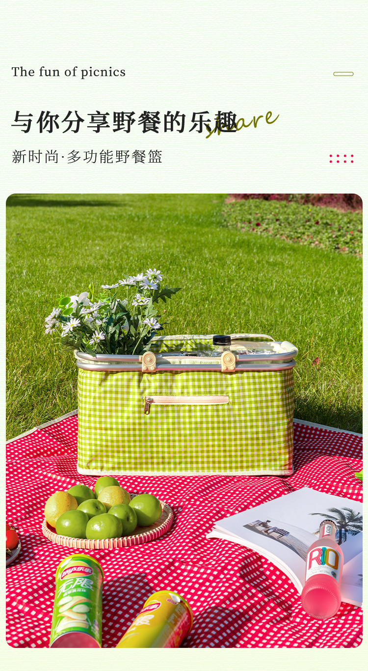 - ¥49.90【升级款】绿色小格子野餐篮30升47*28*23公分(送冰袋5个)