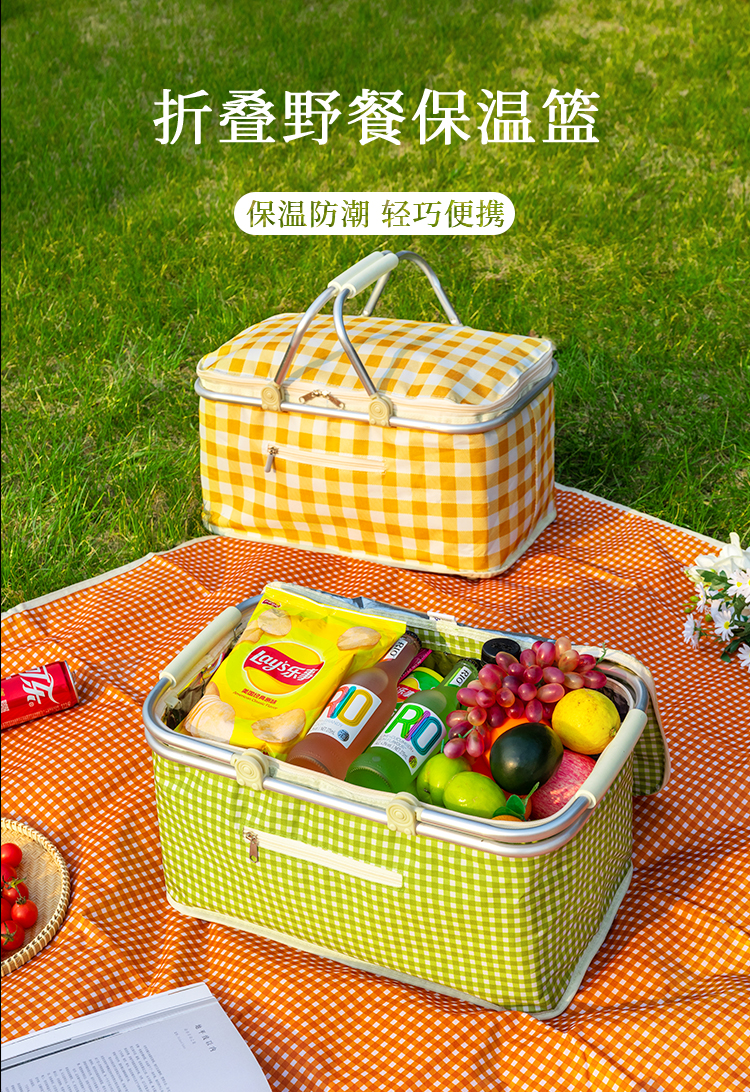 - ¥49.90【升级款】黄色大格子野餐篮30升47*28*23公分(送冰袋5个)