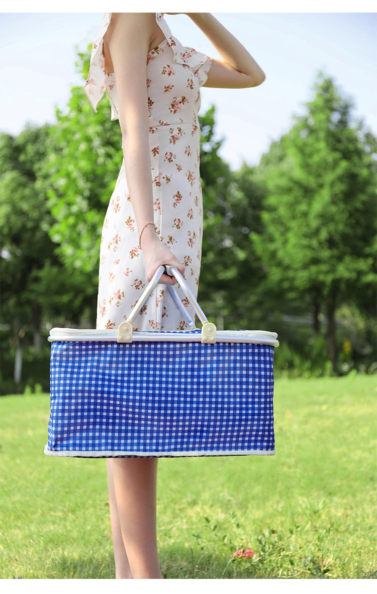- ¥49.90【升级款】蓝色小格子野餐篮30升47*28*23公分(送冰袋5个)