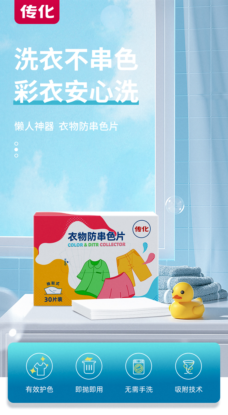 老国货】传化防串色洗衣吸色片防染片串色洗衣片