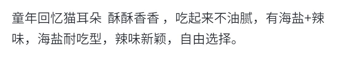 童年回忆猫耳朵,有海盐+辣味,口感酥脆,满口余香
