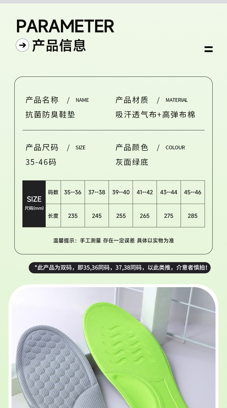 - ¥11.80柔软高弹艾草防臭-黑绿+灰白,1双(体验装),35
