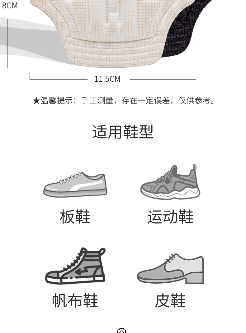 - ¥15.90 【8只组合】黑色组合-2薄款+2厚款(适配多种鞋型),均码