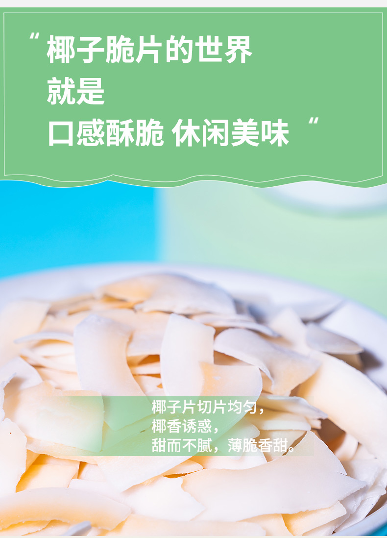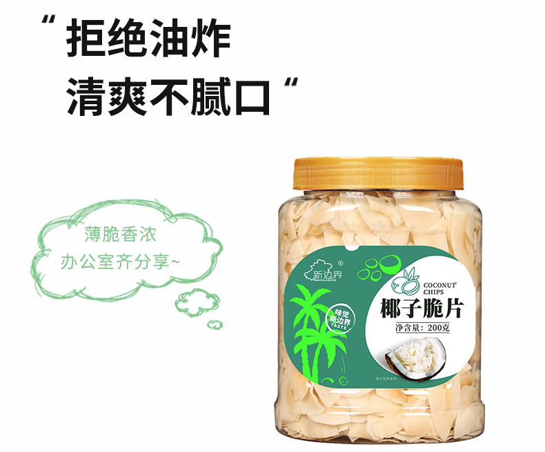 新边界椰子脆片海南特产椰子脆块干烤椰碎片香脆零食品薄脆200g