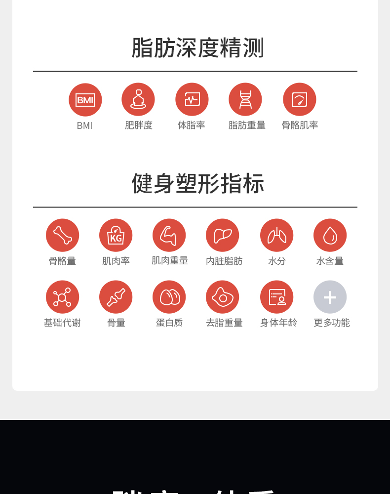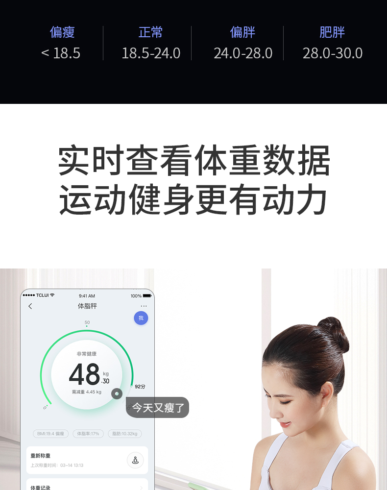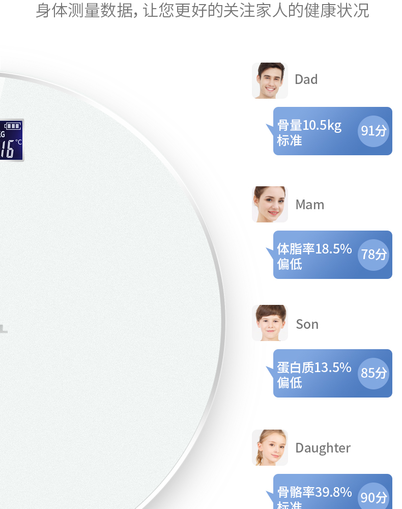 陈三废,小贝饿了,包文婧带过~一年只需充两次,可测体重体脂,高清夜视显示屏不惧黑夜读数清晰,智能APP,81项数据监测生成身体报告,提供饮食方案(例如减肥餐),健康计划等,可发布动态于多人互动~
