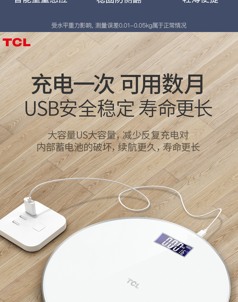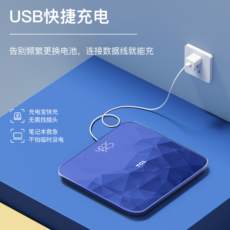 - ¥39.90天空蓝,USB充电+可测体脂(充电续航180天+精准到0.01千克)