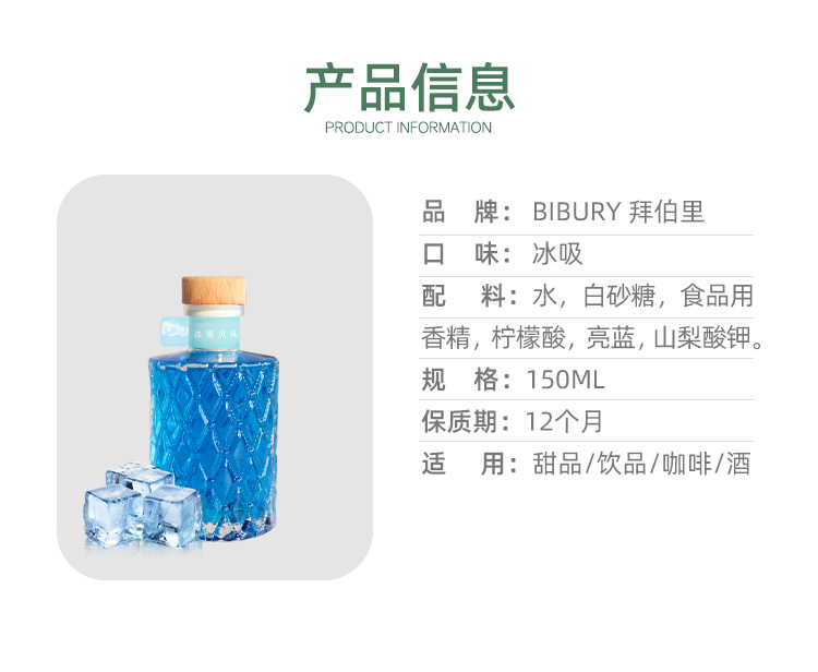 Bibury/拜伯里冰吸风味糖浆150ml装瑞瑞同款冰吸生椰拿铁冰吸糖浆