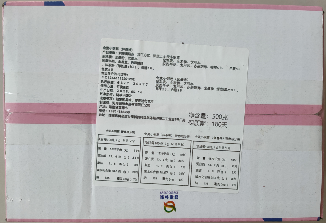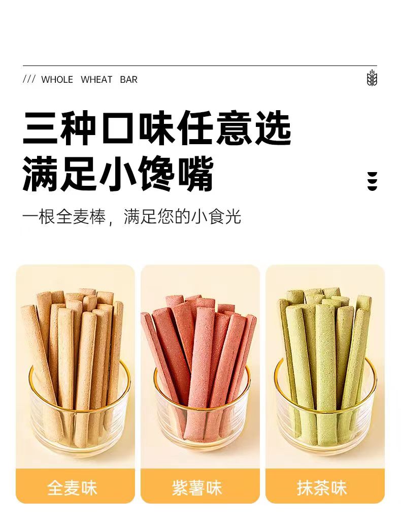 全麦小钢筋500g,原味+紫薯+抹茶三口味随机发
