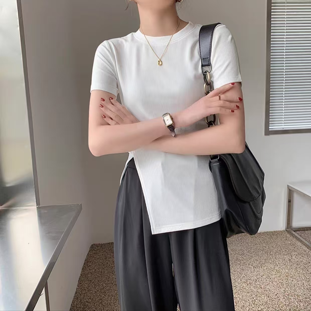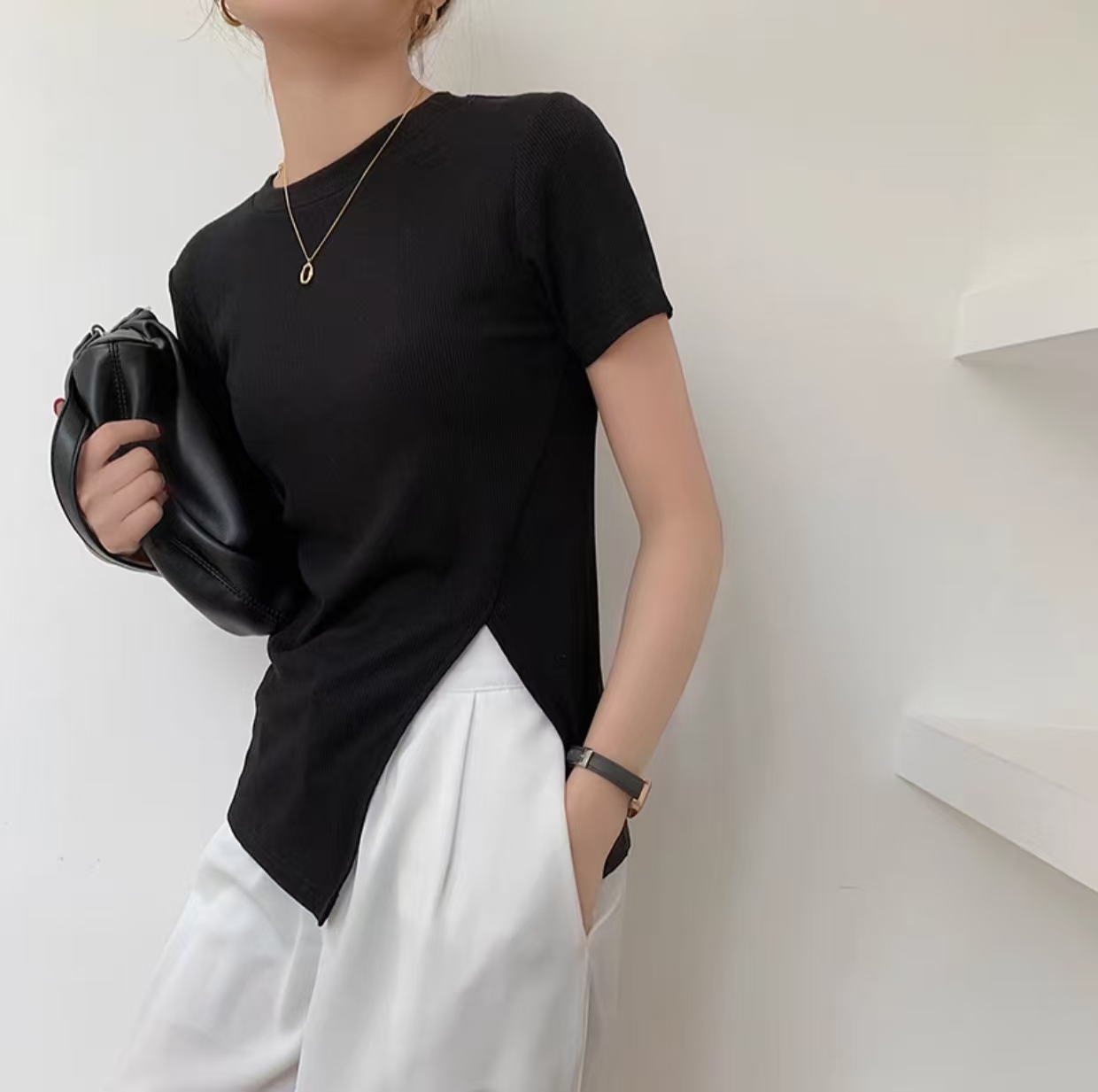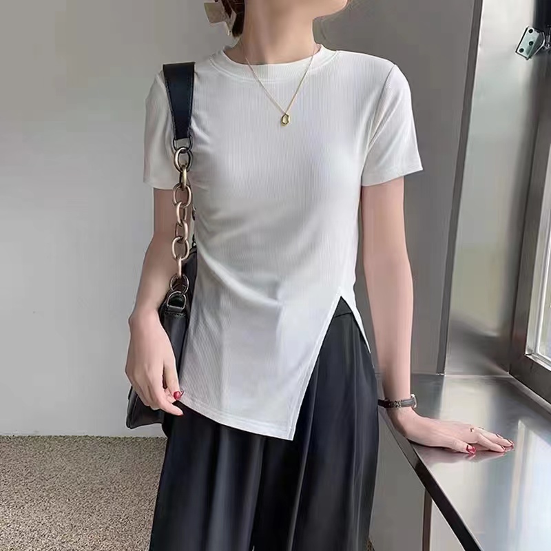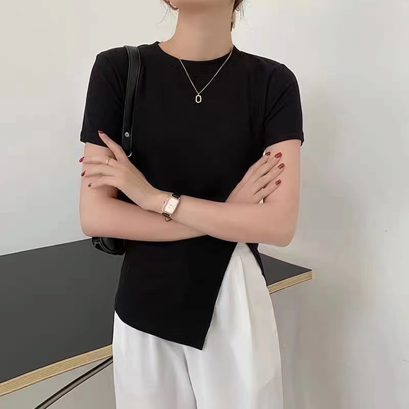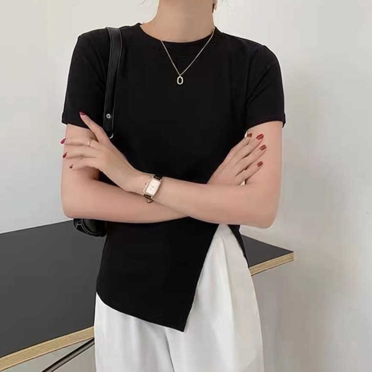 2023年新款独特别致高级感不规则黑色短袖t恤短款上衣女夏季ins潮