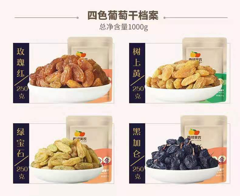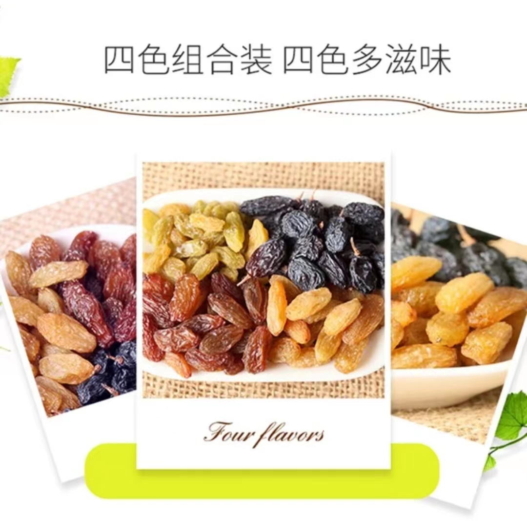 - ¥39.90 四色葡萄干4种口味1kg(玫瑰红 +树上黄+ 绿宝石 +黑加仑各250g)