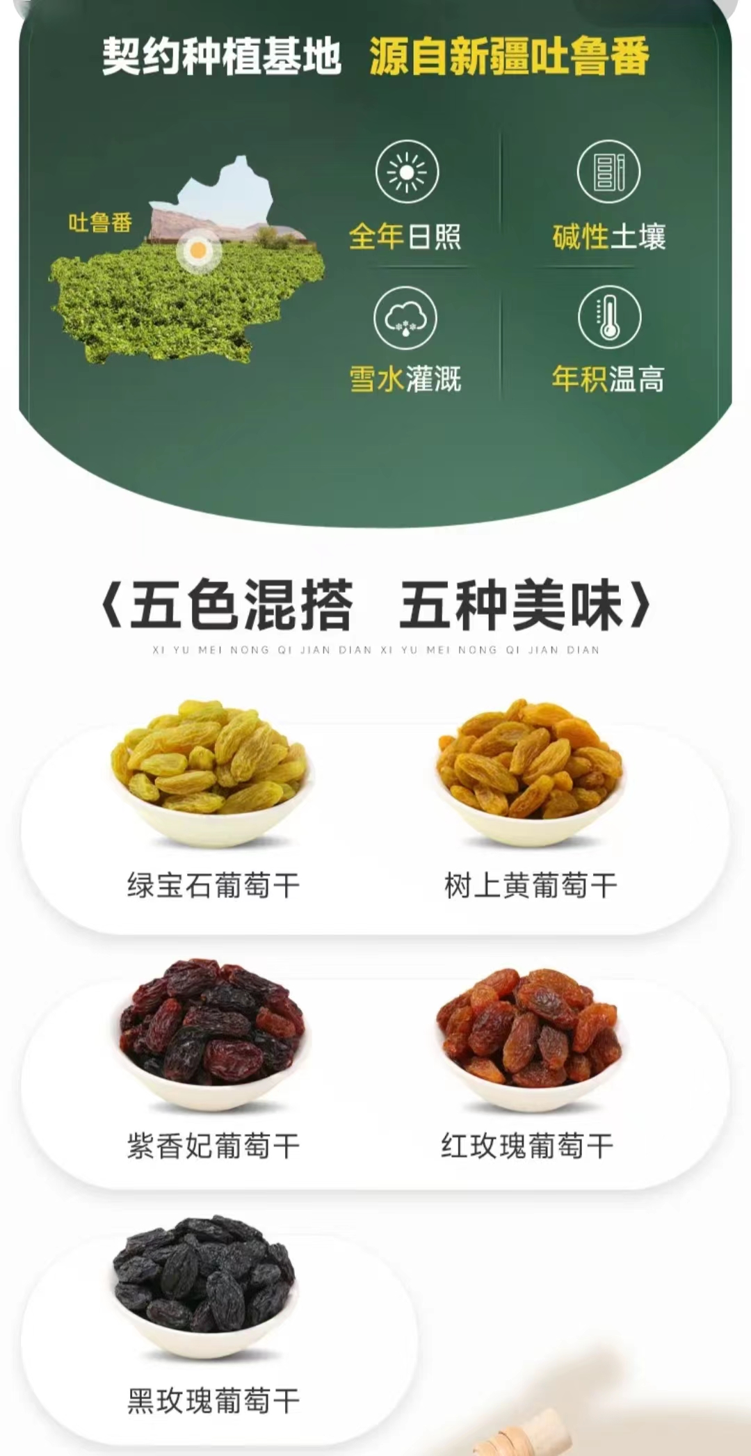 西域美农五色/四色葡萄干无籽香甜饱满肉厚新疆葡萄干自然风干