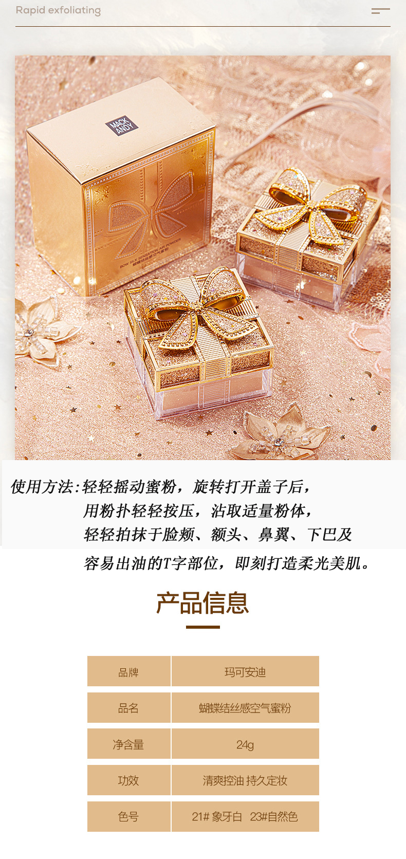 【定妆.控油.磨皮】蝴蝶结定妆蜜粉防水防汗不脱妆不卡粉玛可安迪