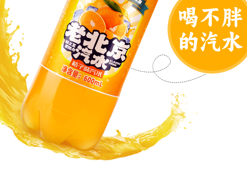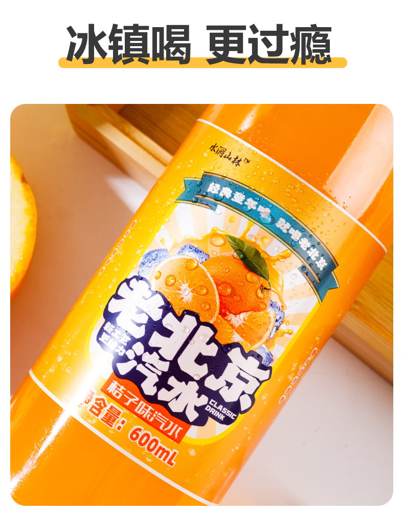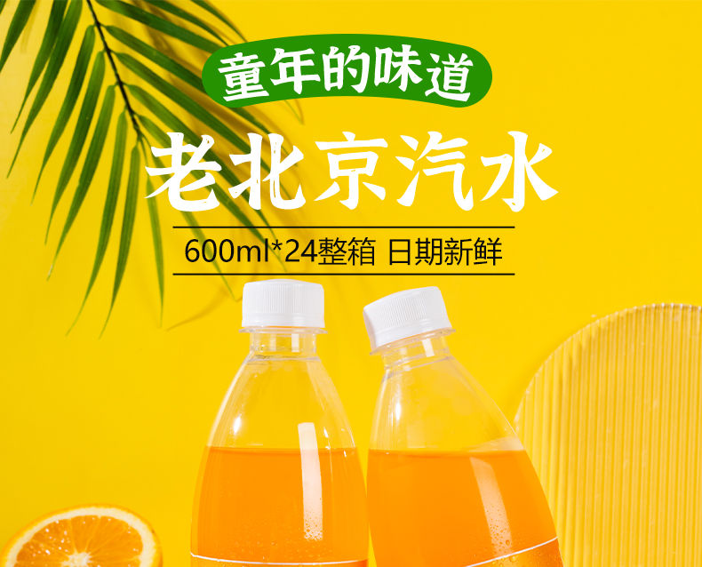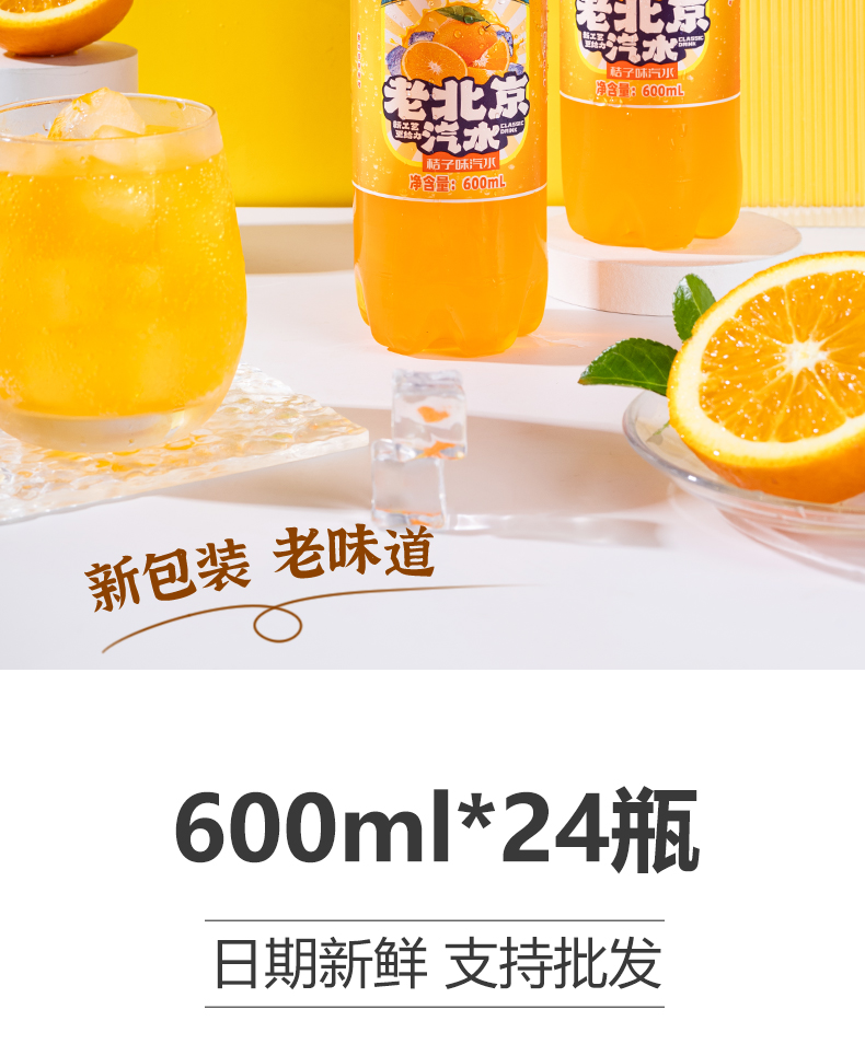 新日期老北京汽水桔子味汽水600mL*24瓶整箱夏季童年老式碳酸饮料