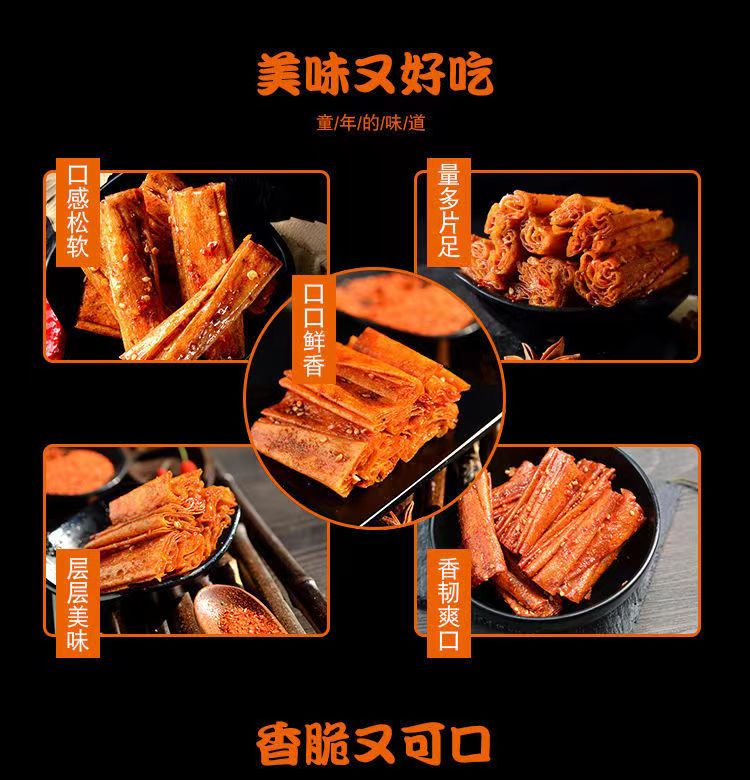 这款香辣豆皮豆卷辣条辣片麻辣豆腐干休闲零食儿时怀旧小吃大礼包真是太棒了!它包含了各种口味的豆卷,价格也非常实惠。