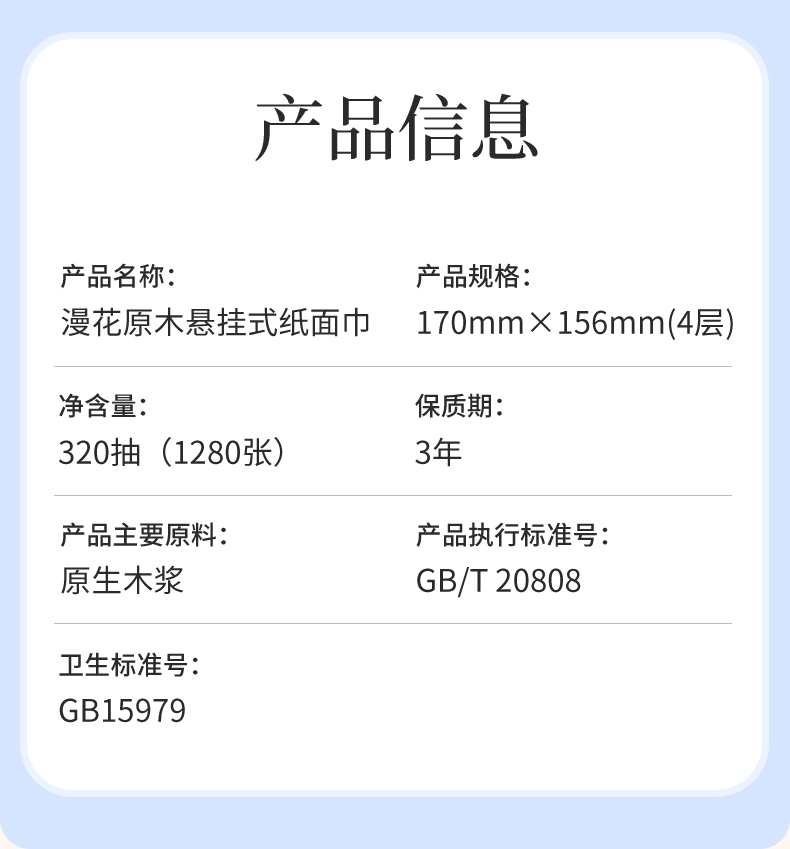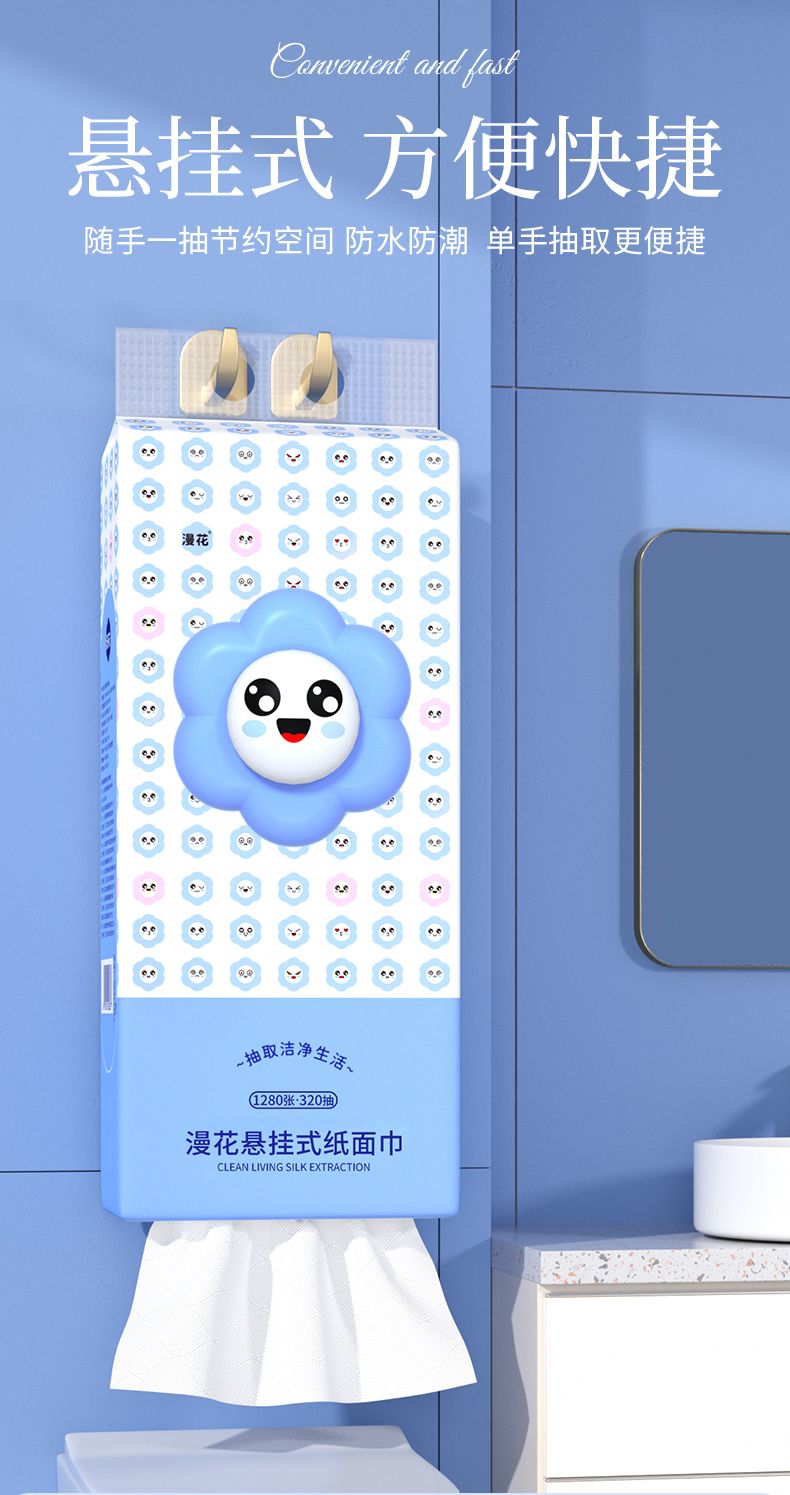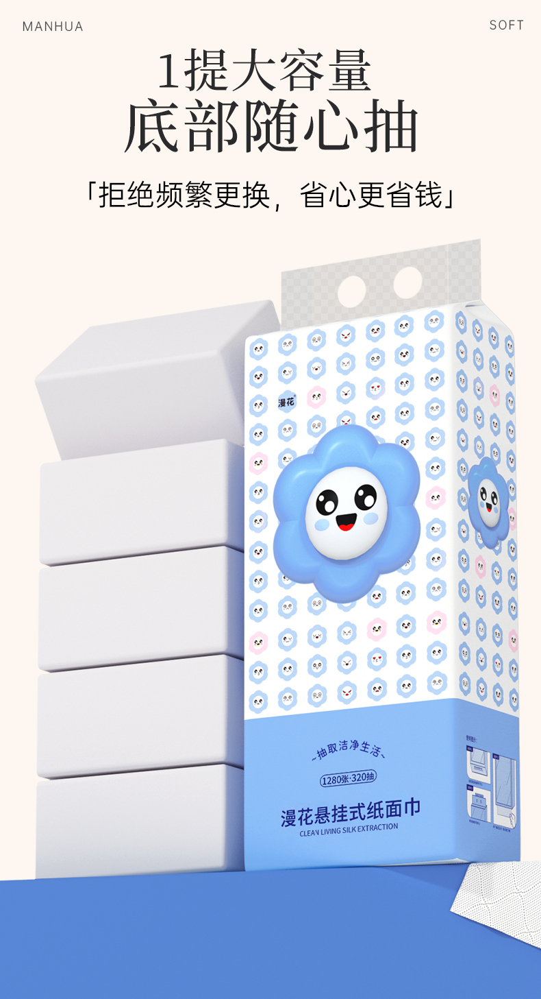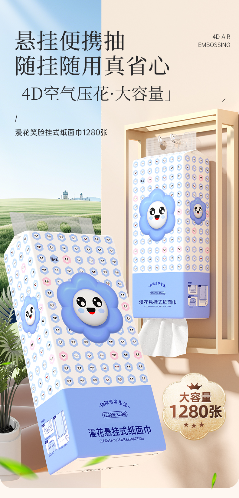 漫花悬挂式抽纸大包柔软挂式纸巾1280张家用面巾纸6提家庭装