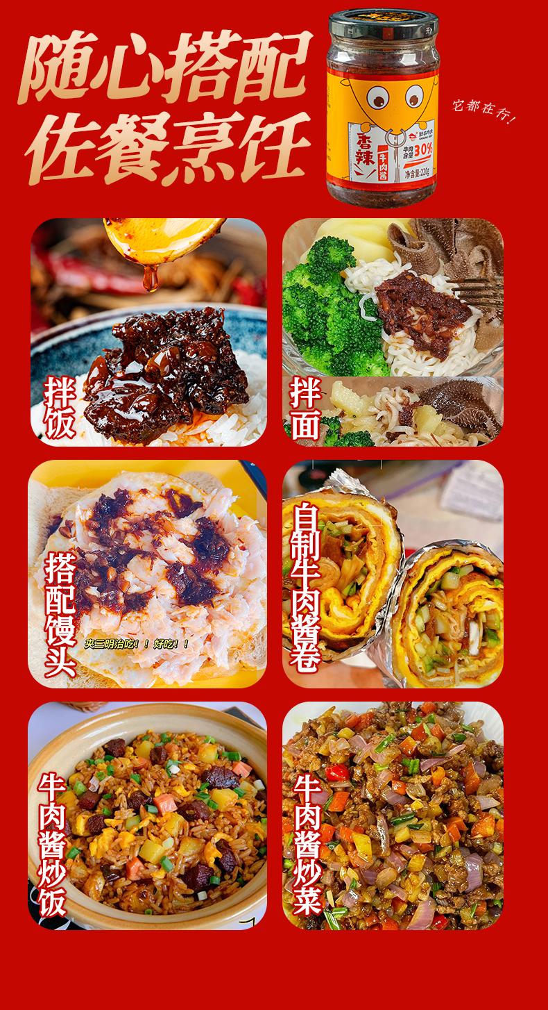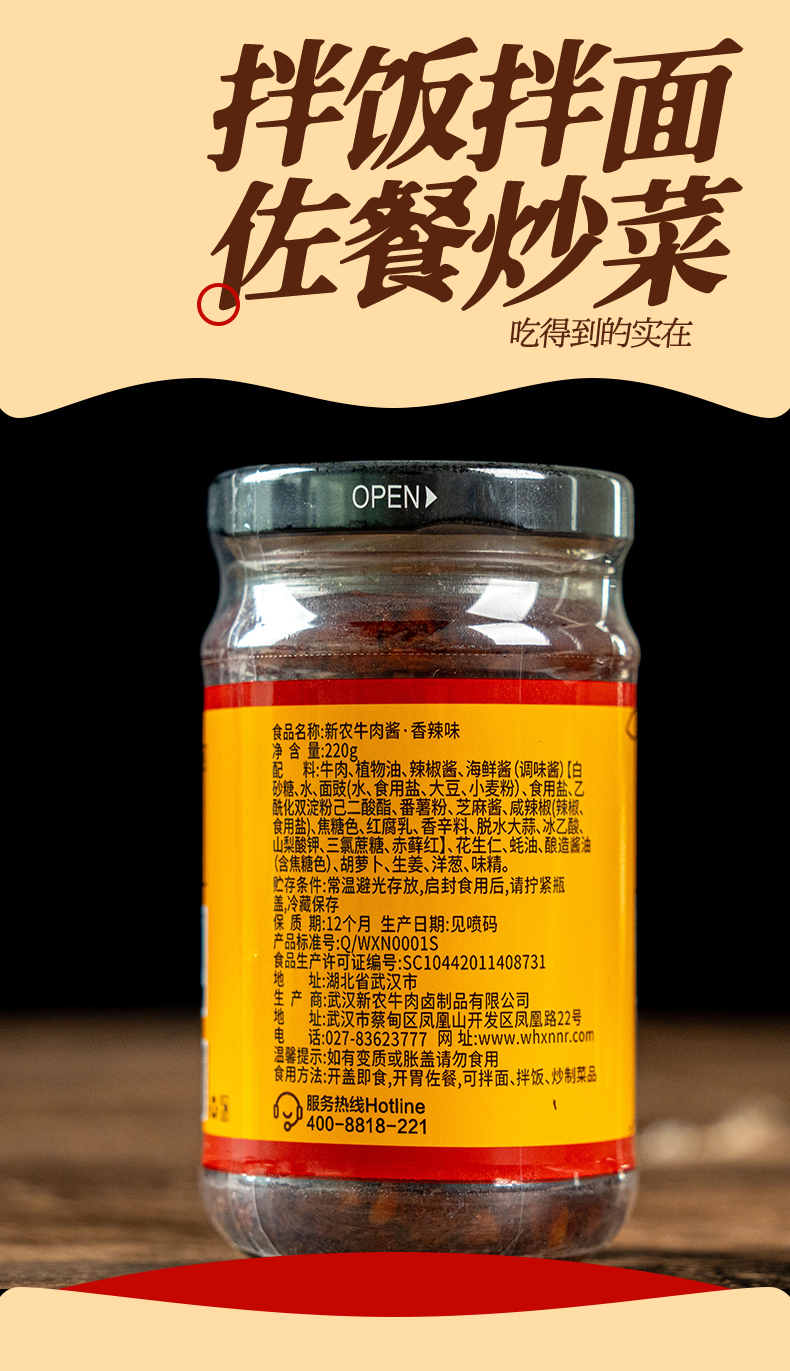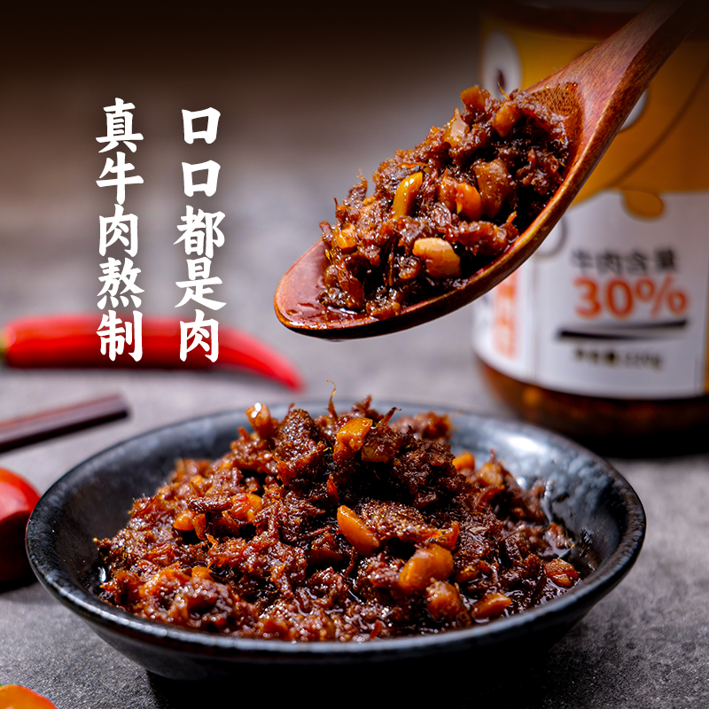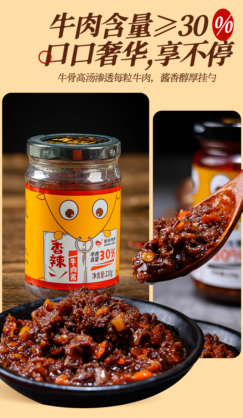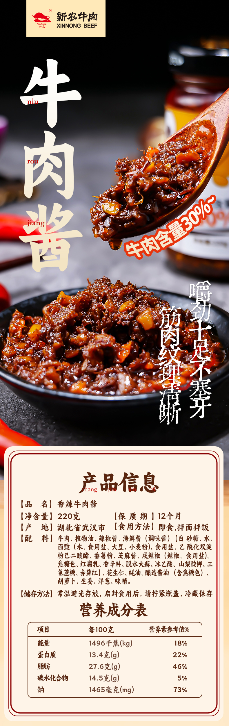 【新农牛肉】香辣招牌牛肉酱开盖即食下饭菜拌饭拌面夹馍酱220g*2