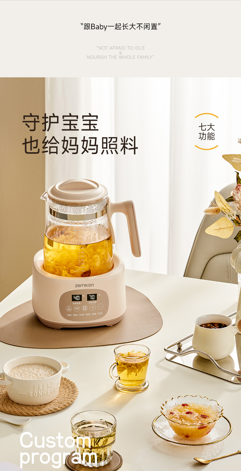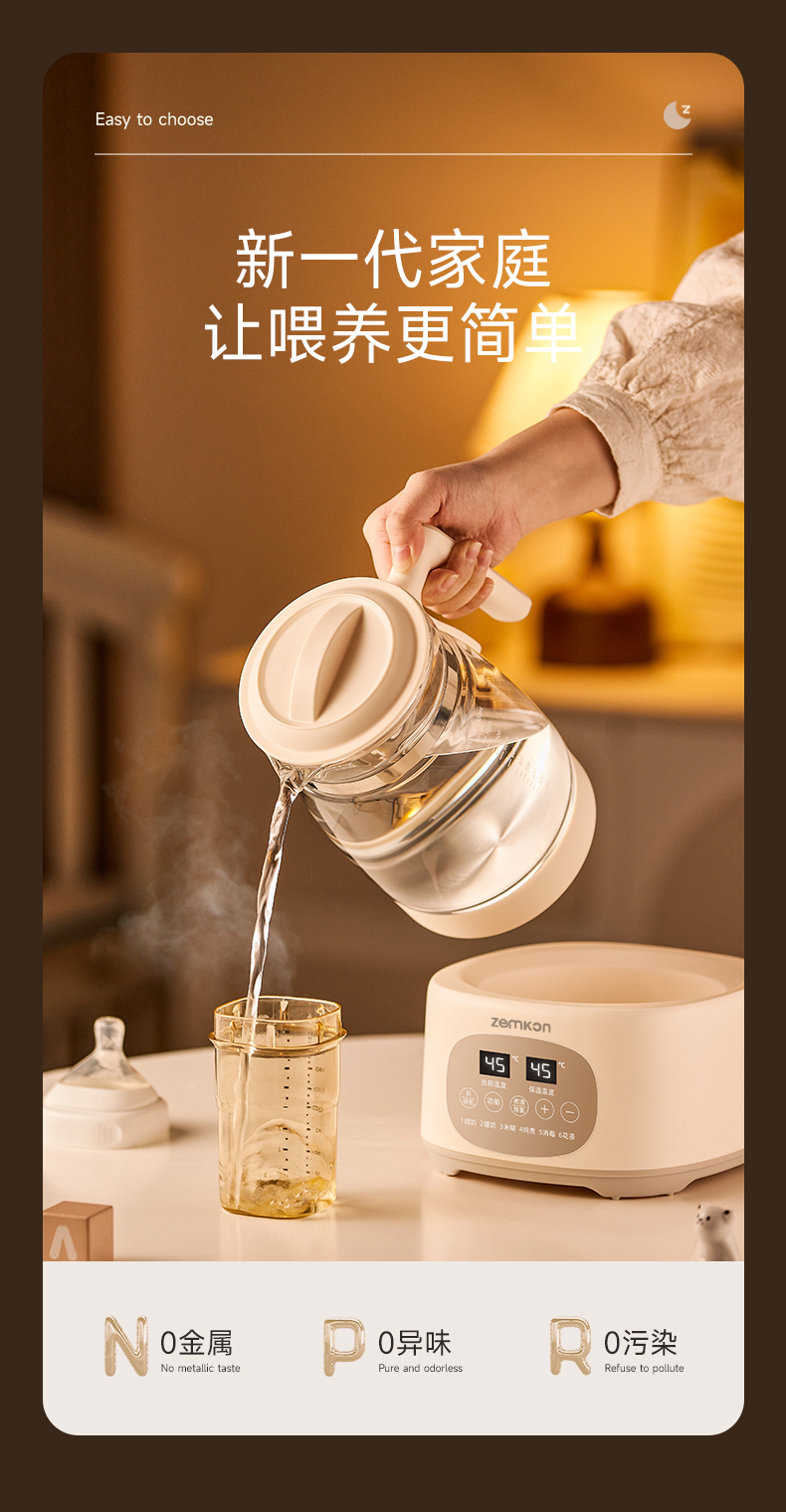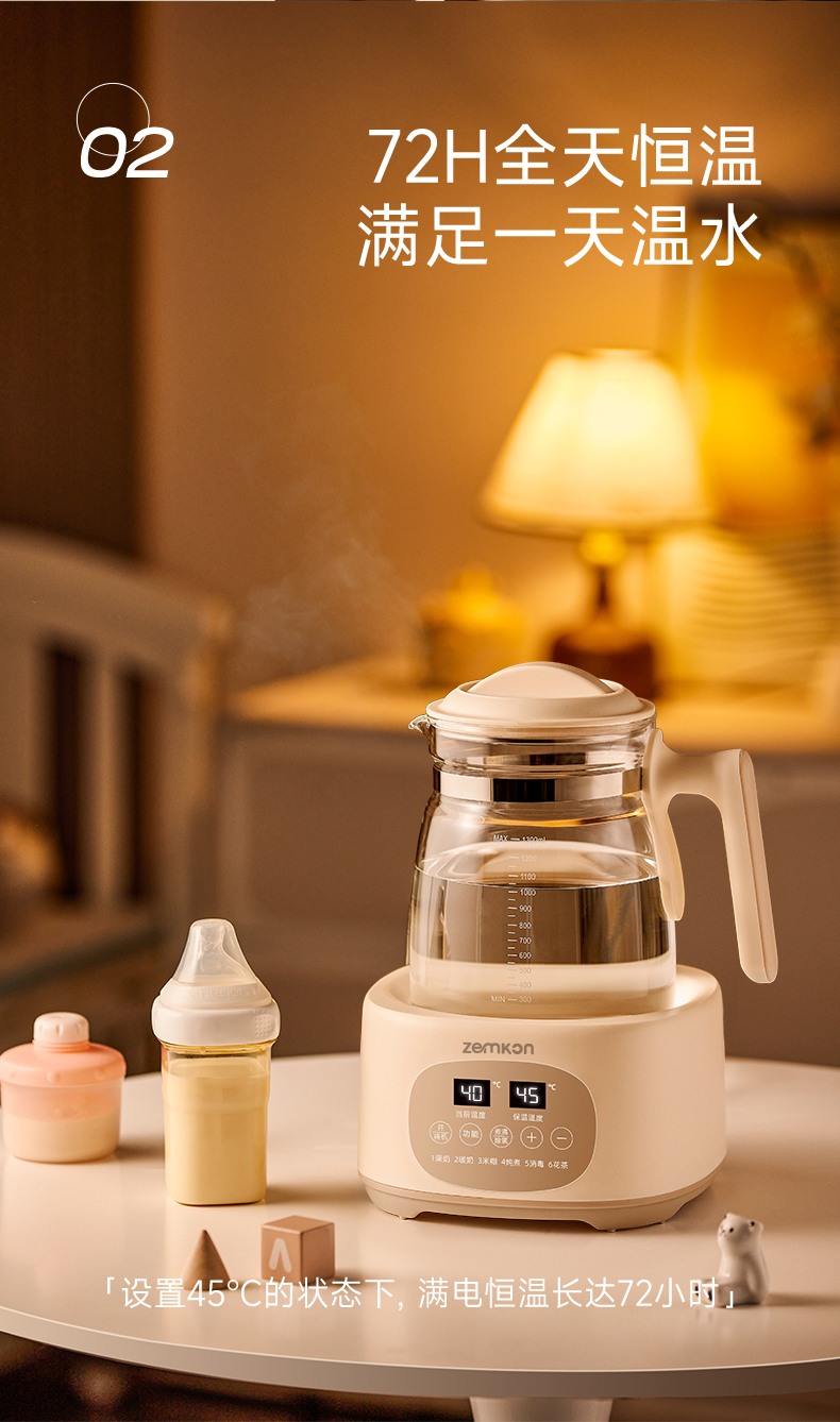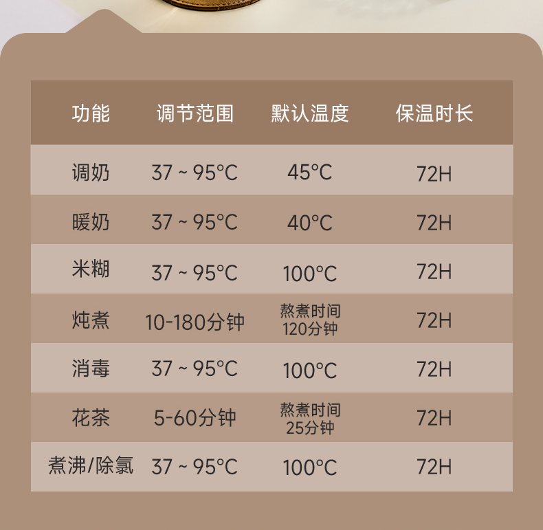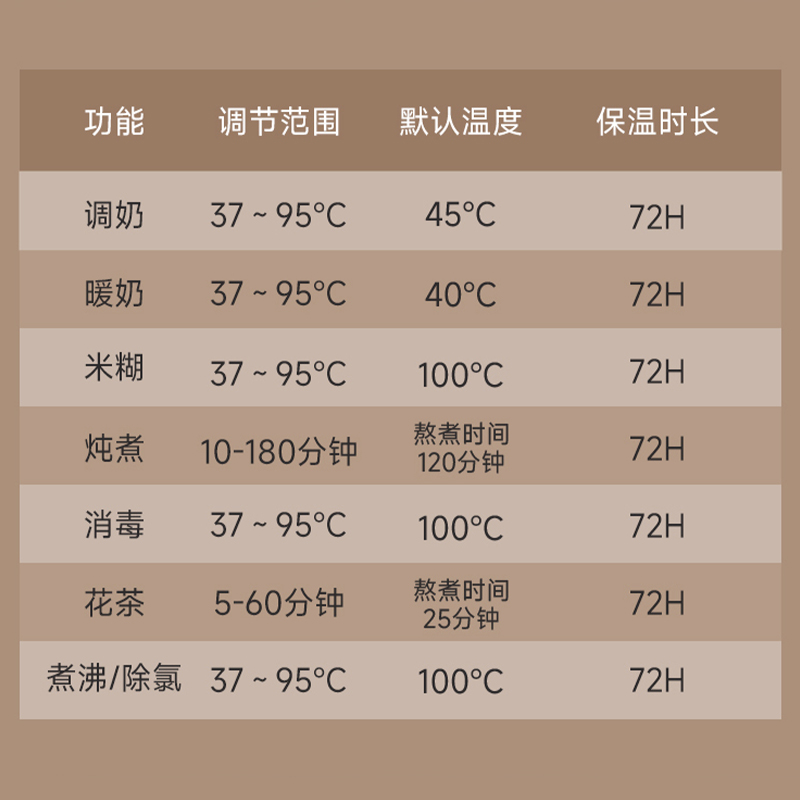 45°智能恒温,24小时智能恒温,泡奶只需30秒,无无需看管,燕窝、小米粥、排骨、