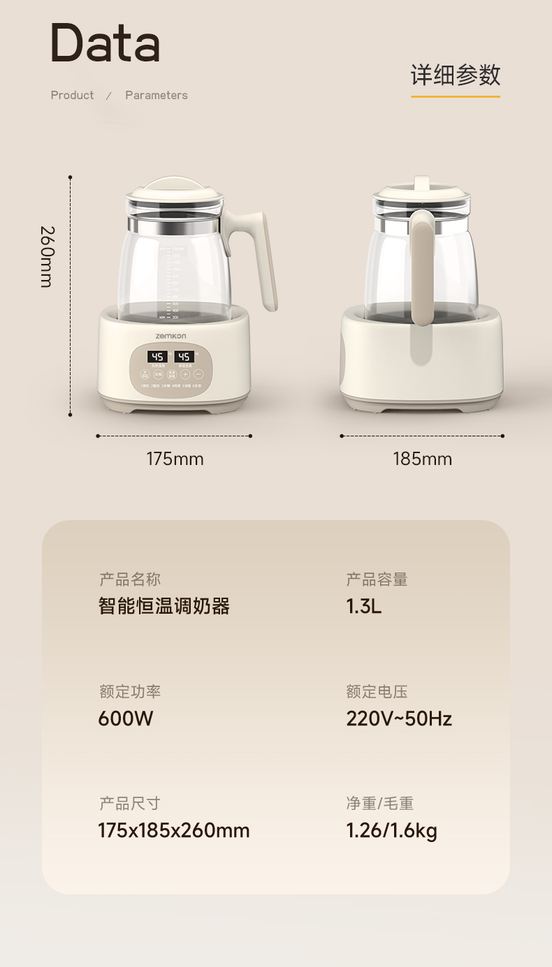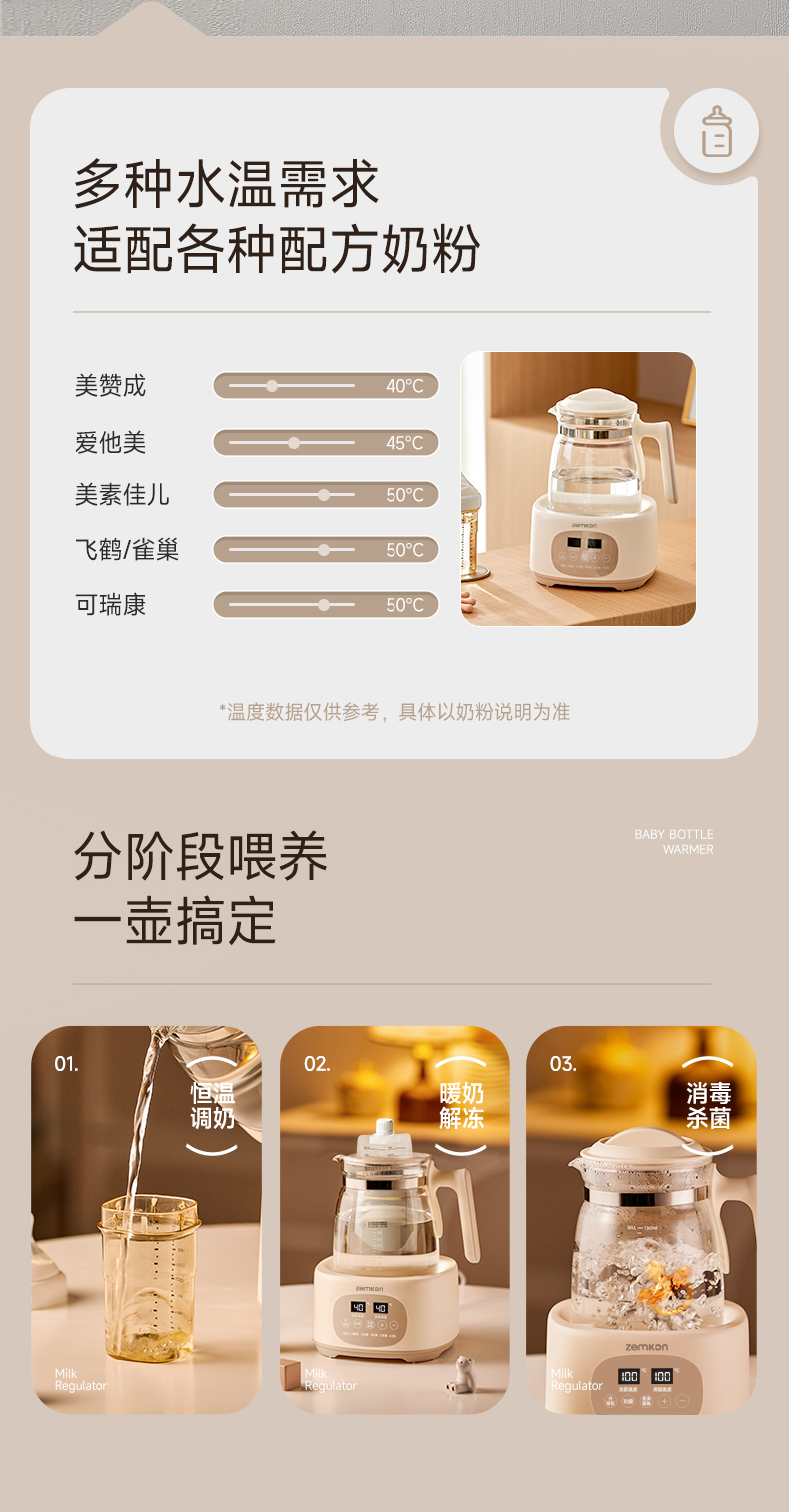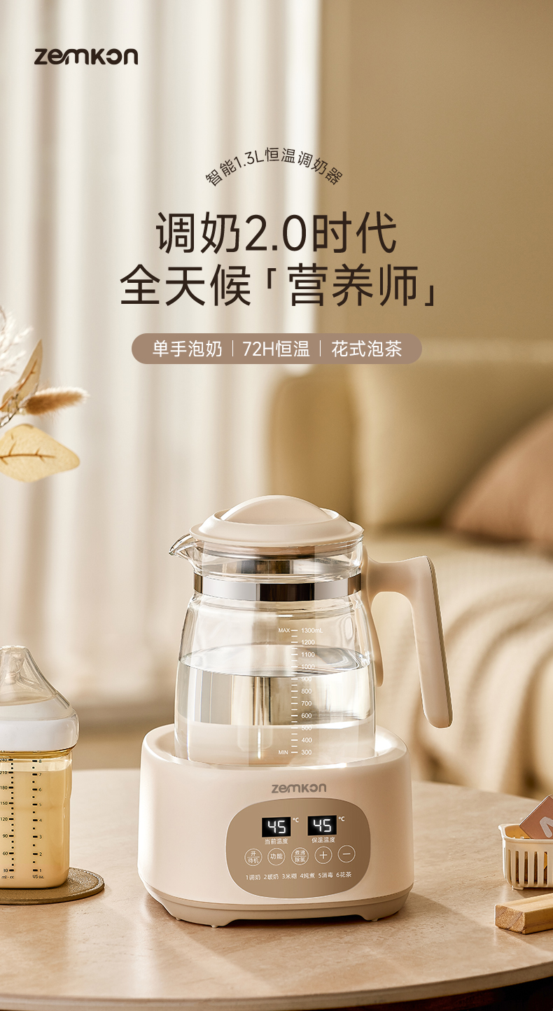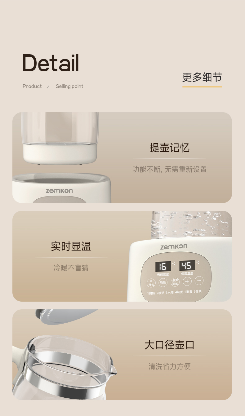 45°智能恒温,24小时智能恒温,泡奶只需30秒,无无需看管,燕窝、小米粥、排骨、