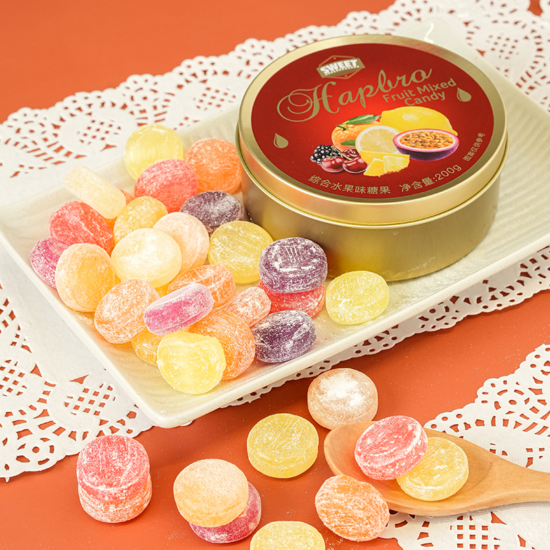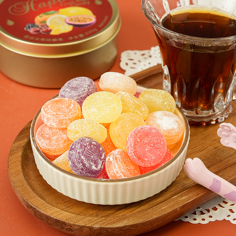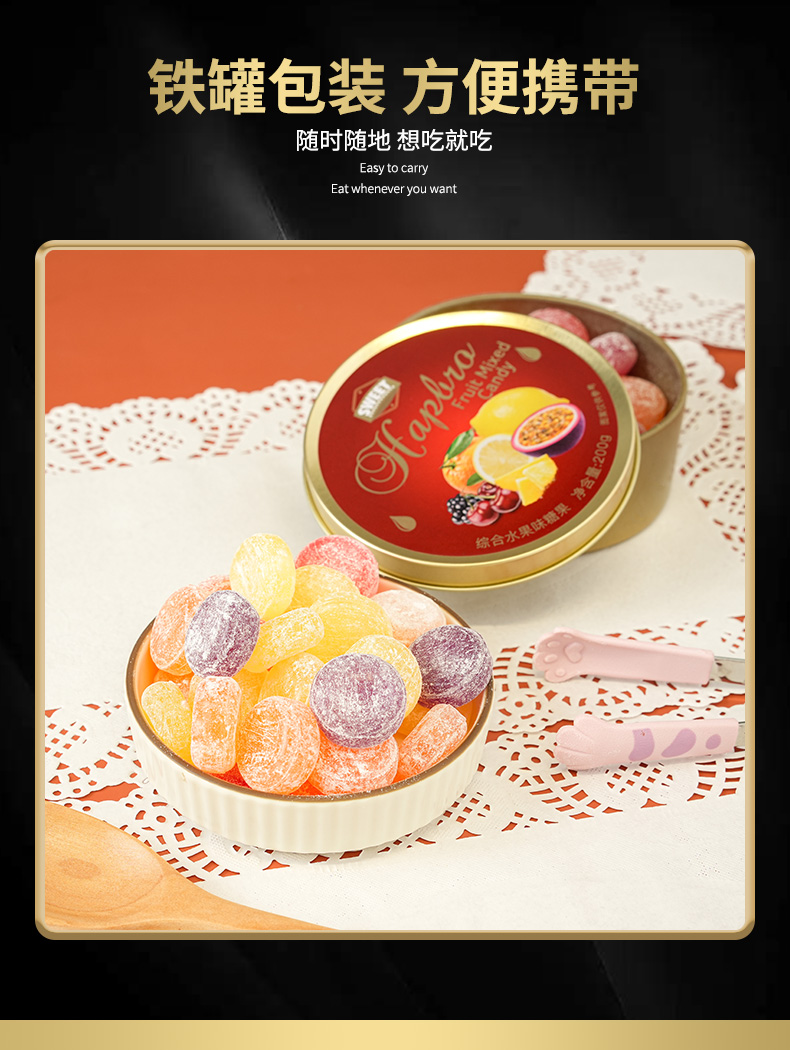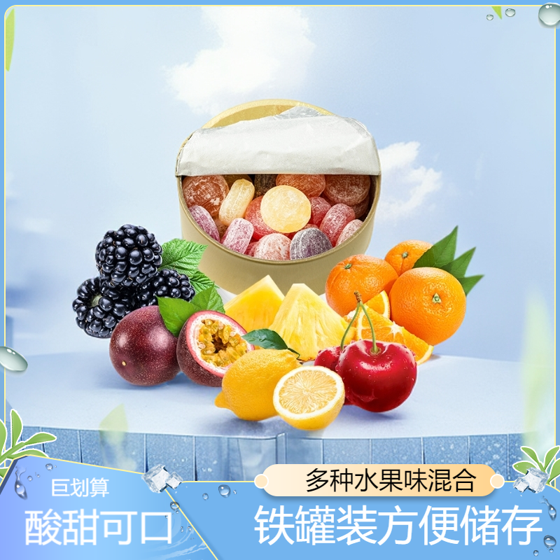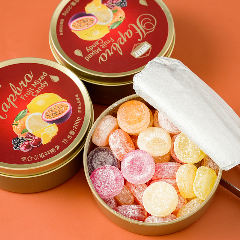 水果糖圣诞年货酸甜铁罐装铁盒什锦糖混合水果味糖喜糖零食年货糖