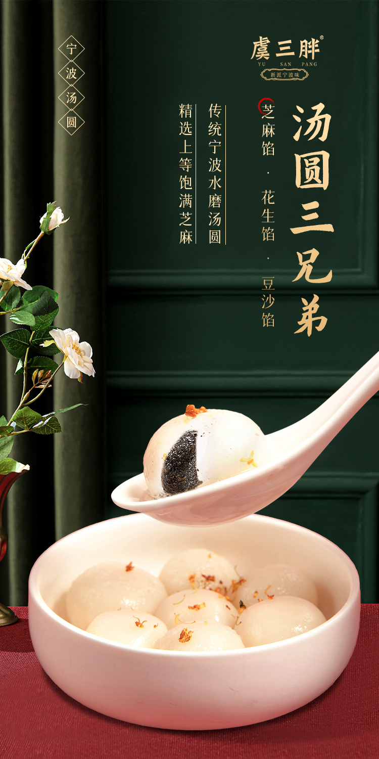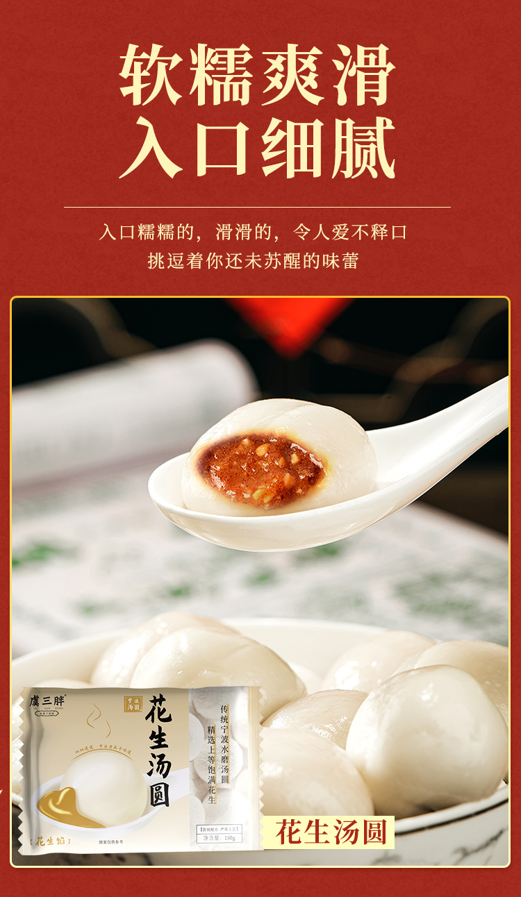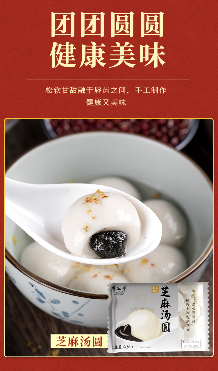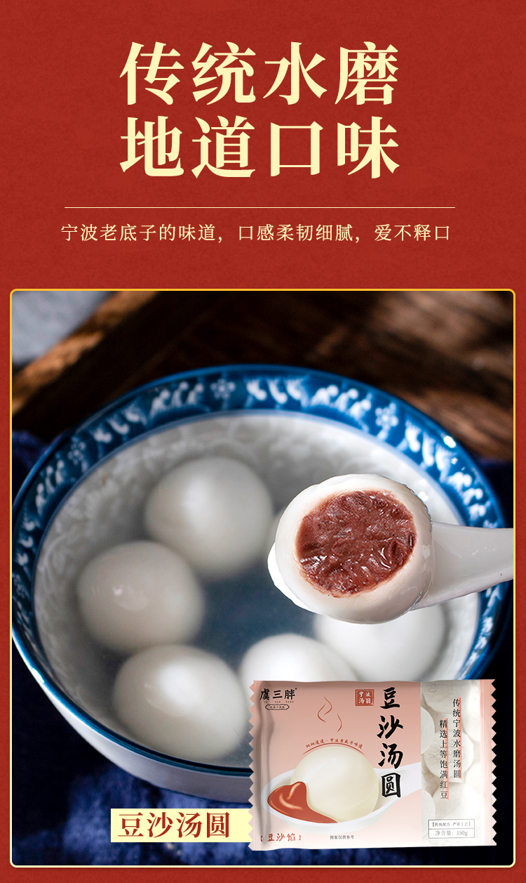 虞三胖宁波水煮黑芝麻汤圆150g 花生豆沙馅元宵 冷冻儿童水磨汤圆