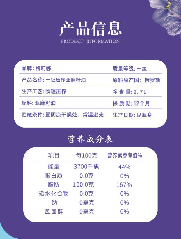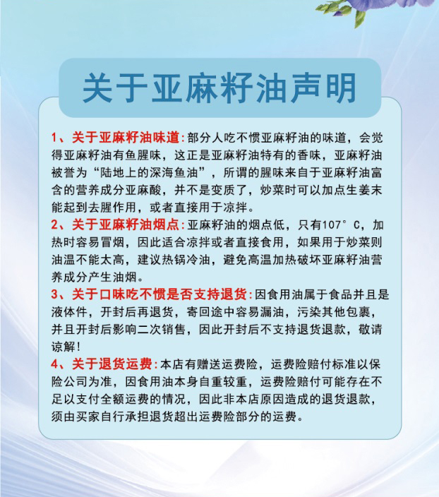 - ¥59.90 亚麻籽油2.7L【净重5斤】