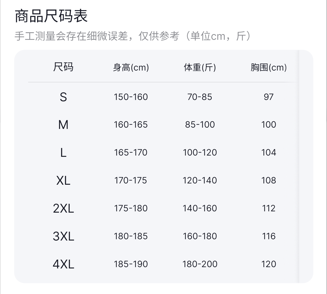 - ¥19.90 白色(220短袖SOUND),3XL(160-180斤)