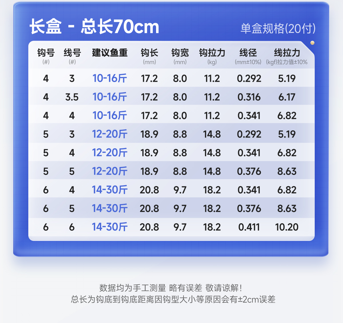 - ¥20.80【钩9线1.0】70cm改良狼牙(20付)鱼重5斤内