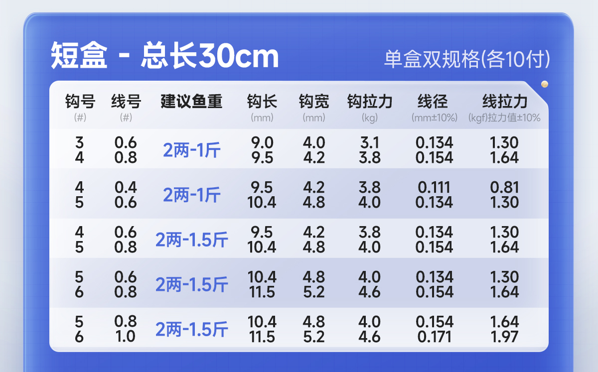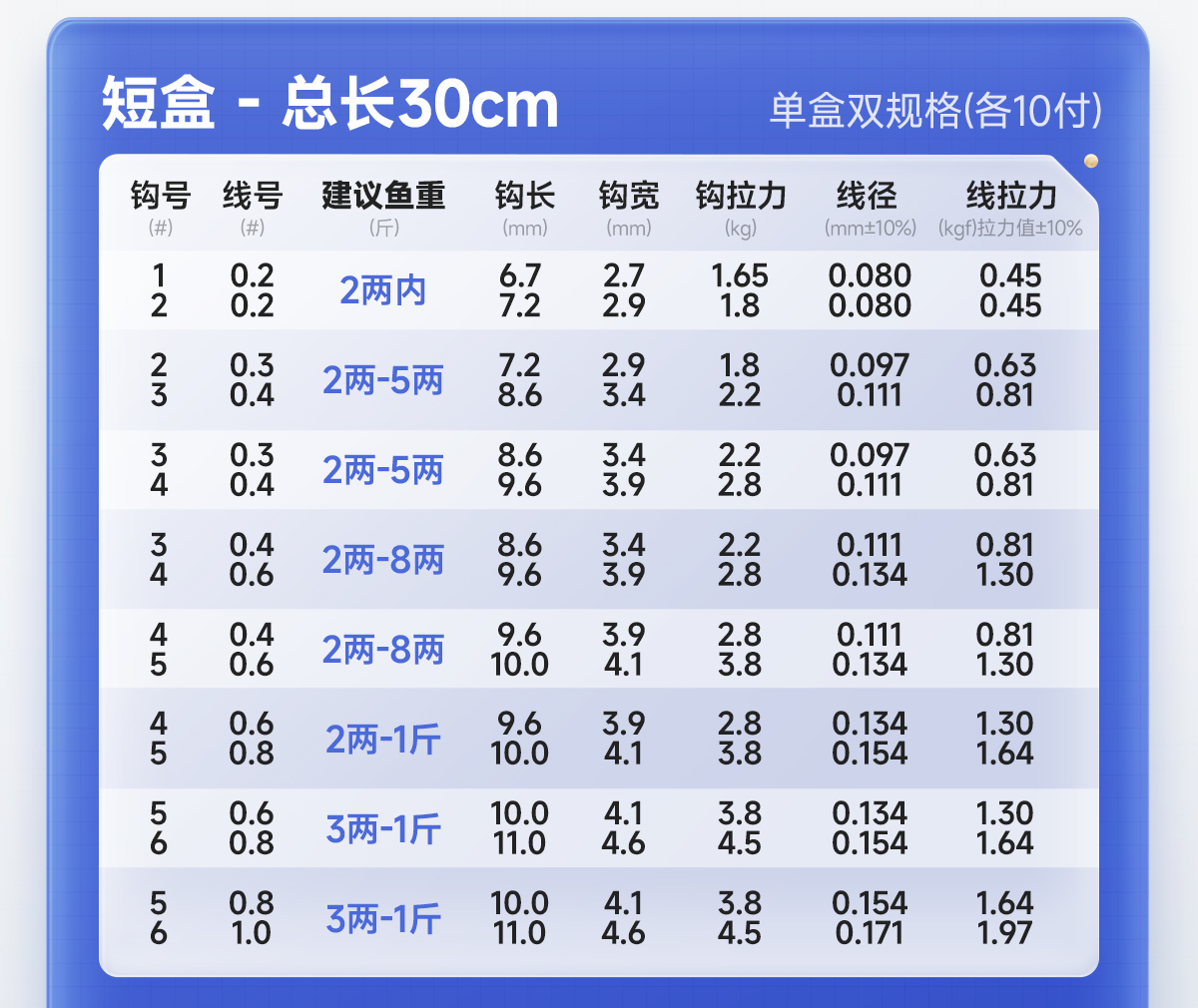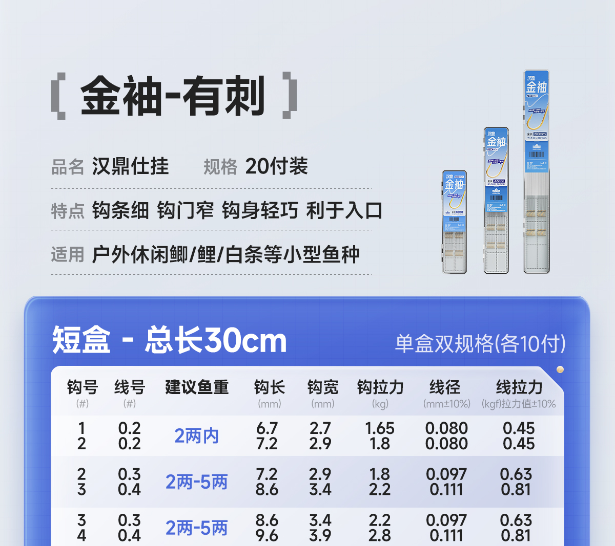 - ¥16.90【钩2线0.3+钩3线0.4】30cm金袖有刺(20付)