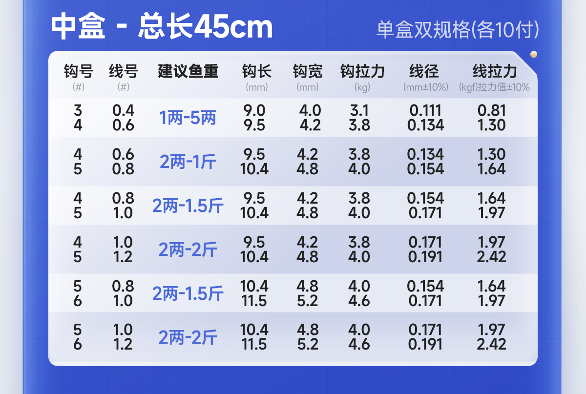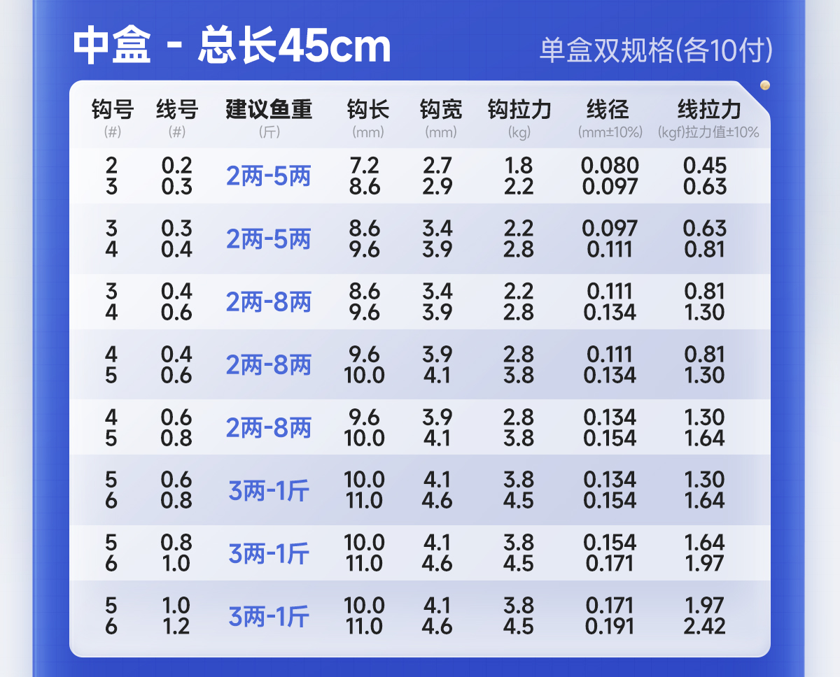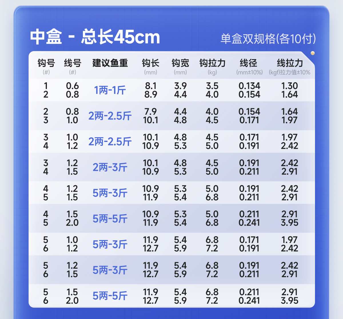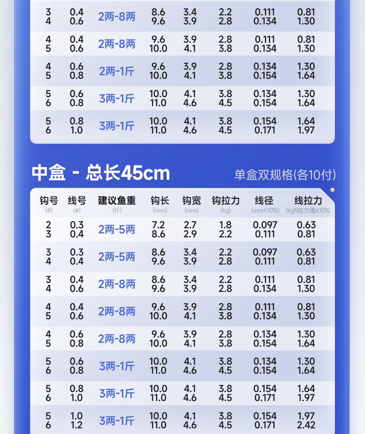 - ¥19.90【钩5线1.0+钩6线1.2】45cm金袖有刺(20付)