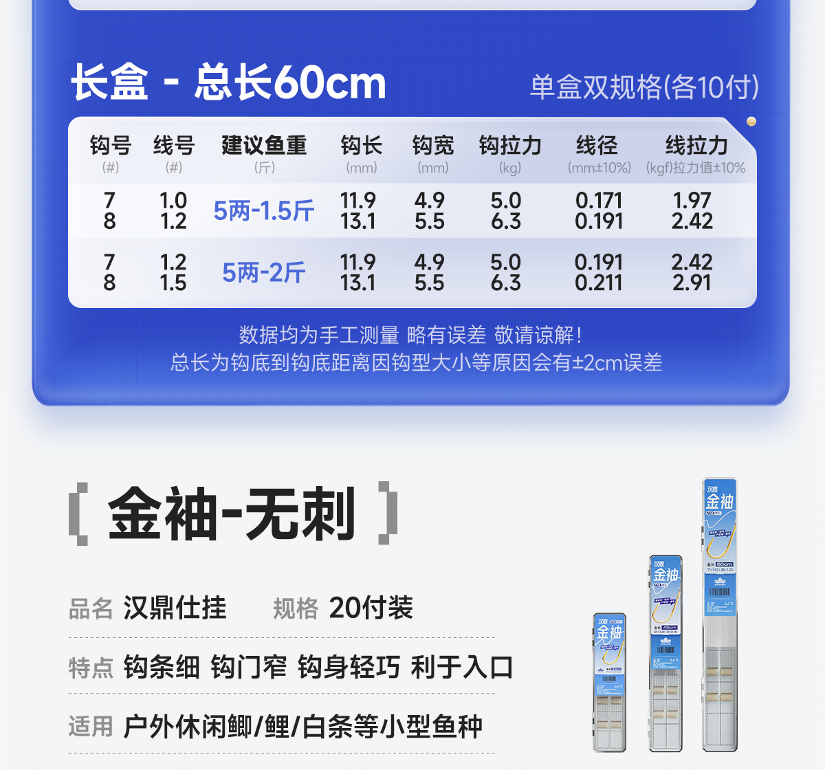 - ¥17.90【钩7线1.0+钩8线1.2】60cm金袖无刺(20付)