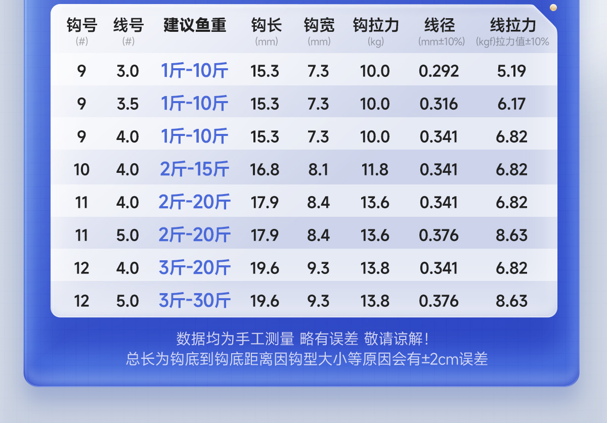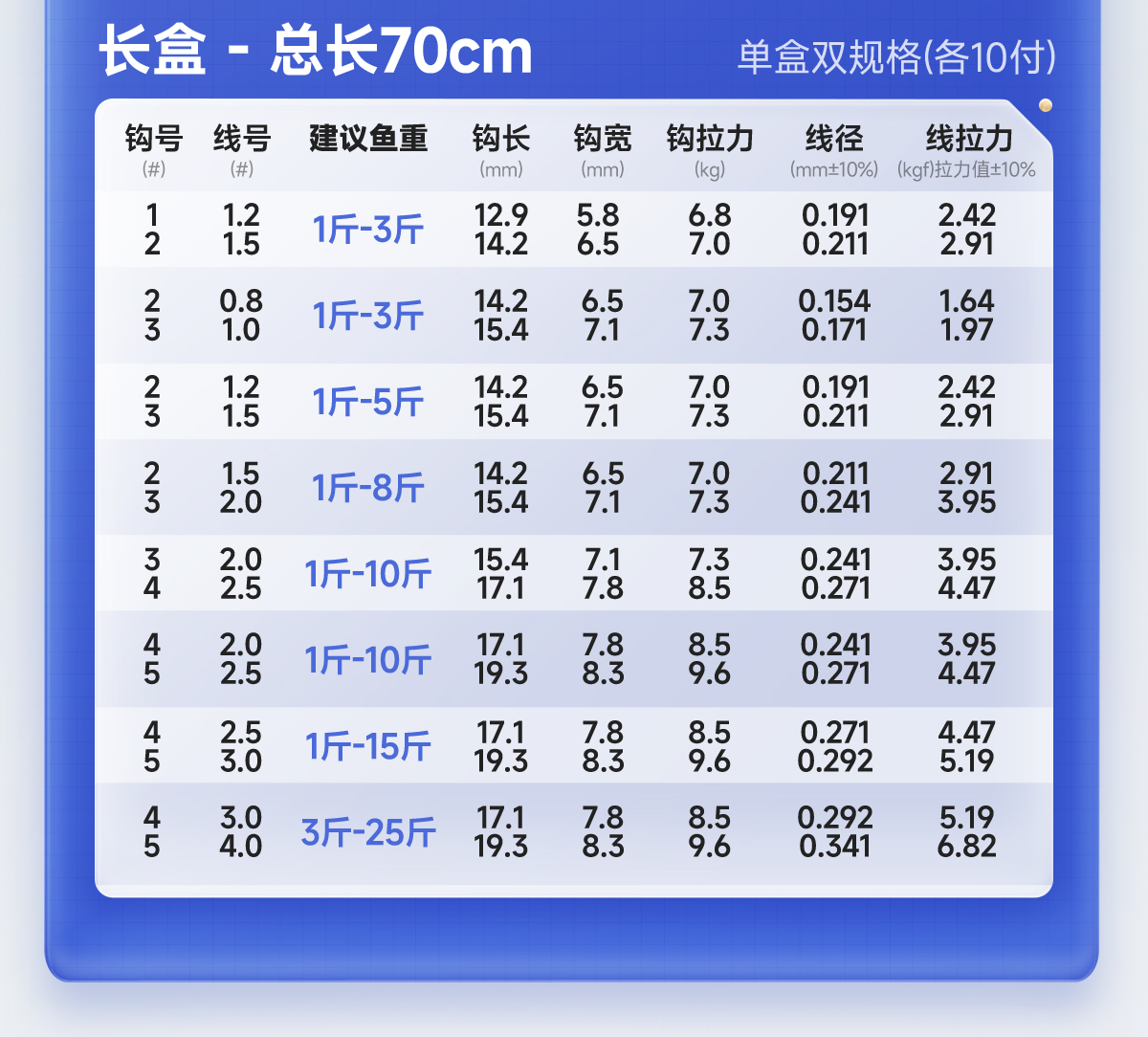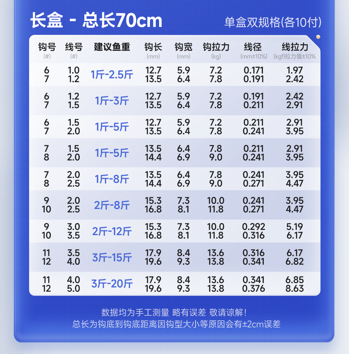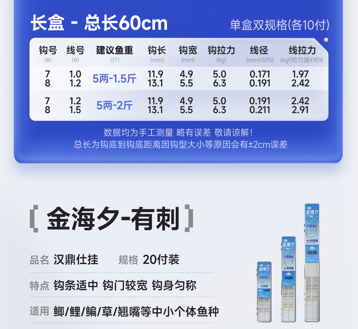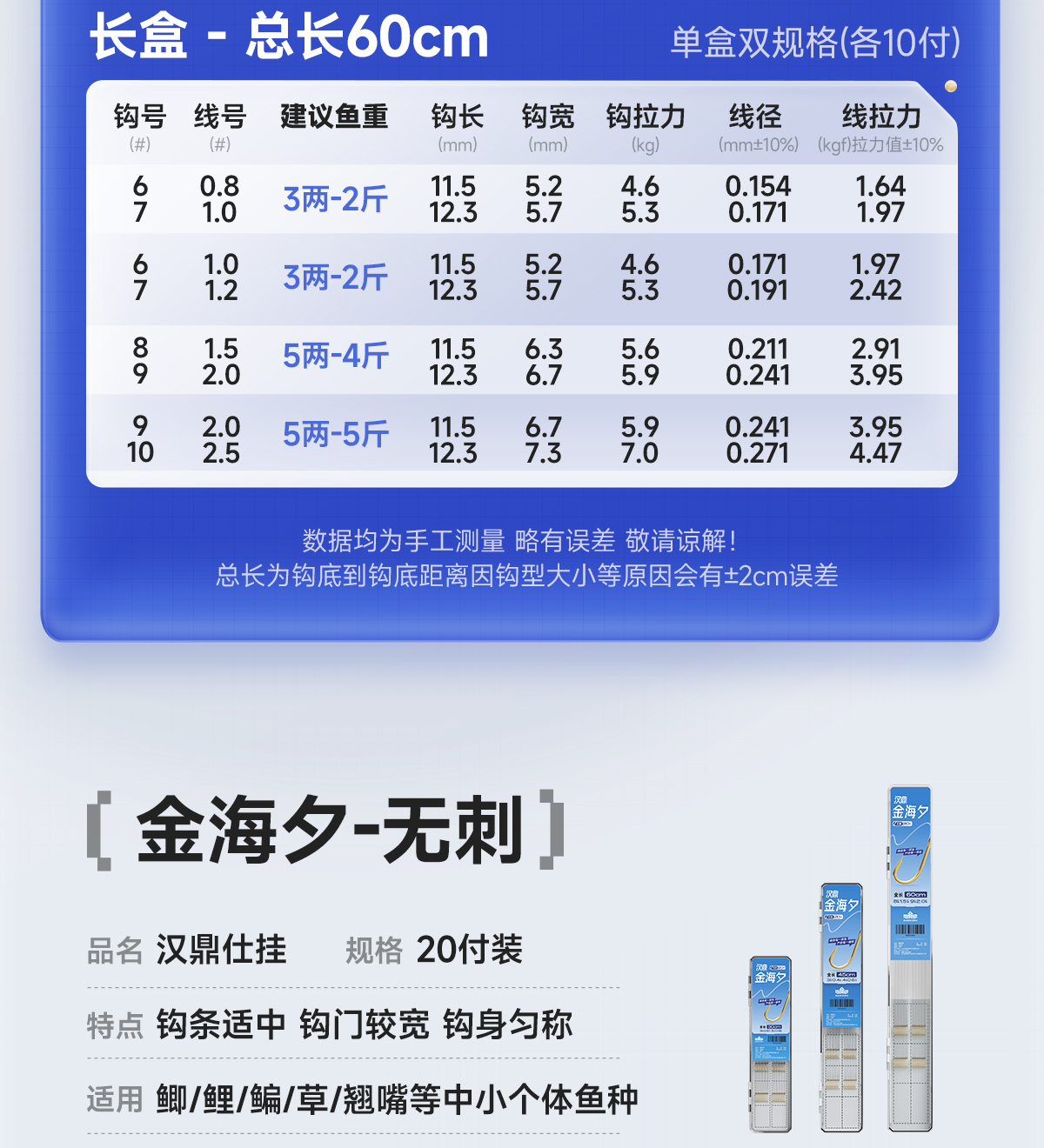 - ¥17.90【钩9线2.0+钩10线2.5】60cm金海夕有刺(20付)