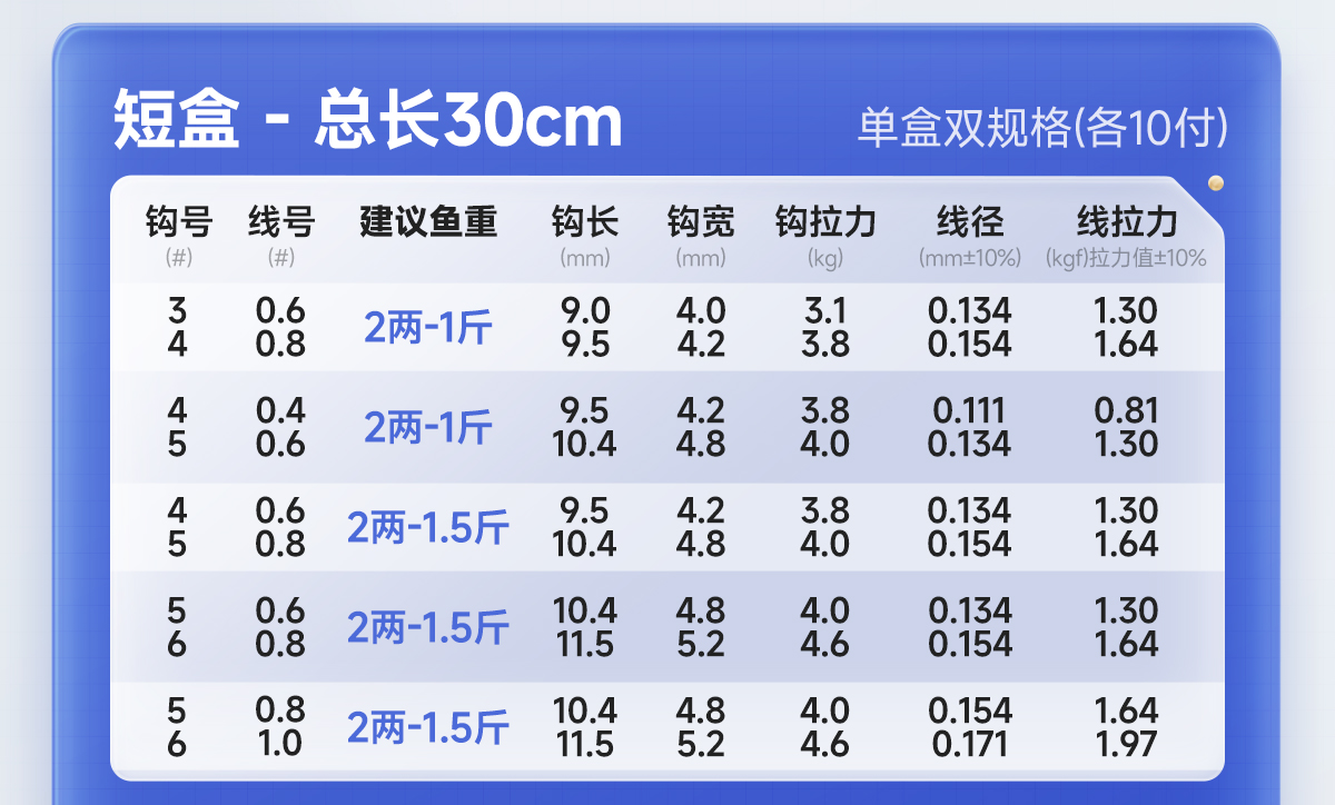 - ¥16.90【钩5线0.6+钩6线0.8】30cm金袖有刺(20付)