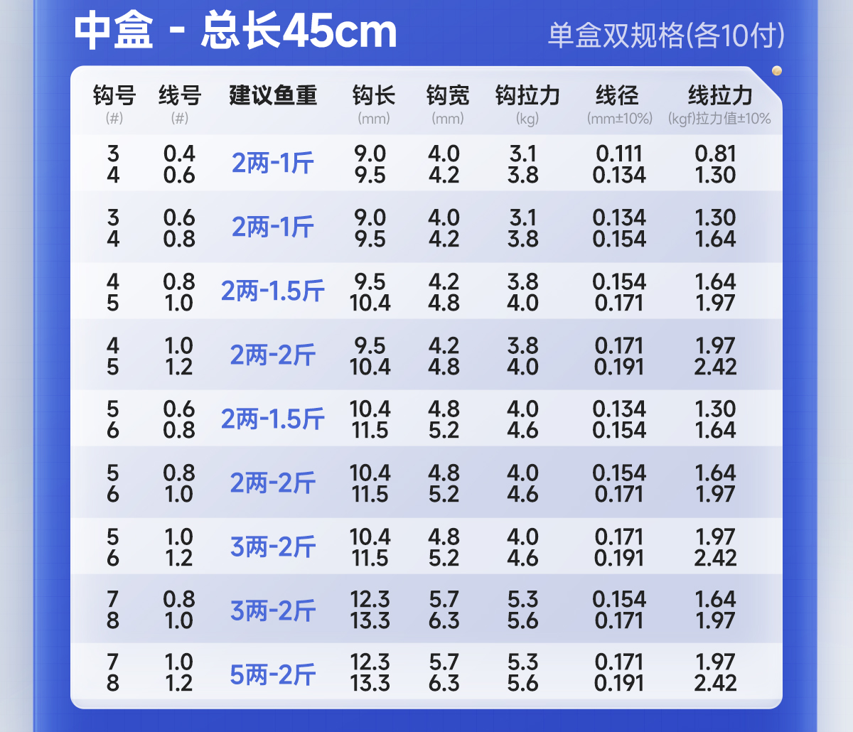 - ¥19.90【钩5线1.0+钩6线1.2】45cm金海夕无刺(20付)