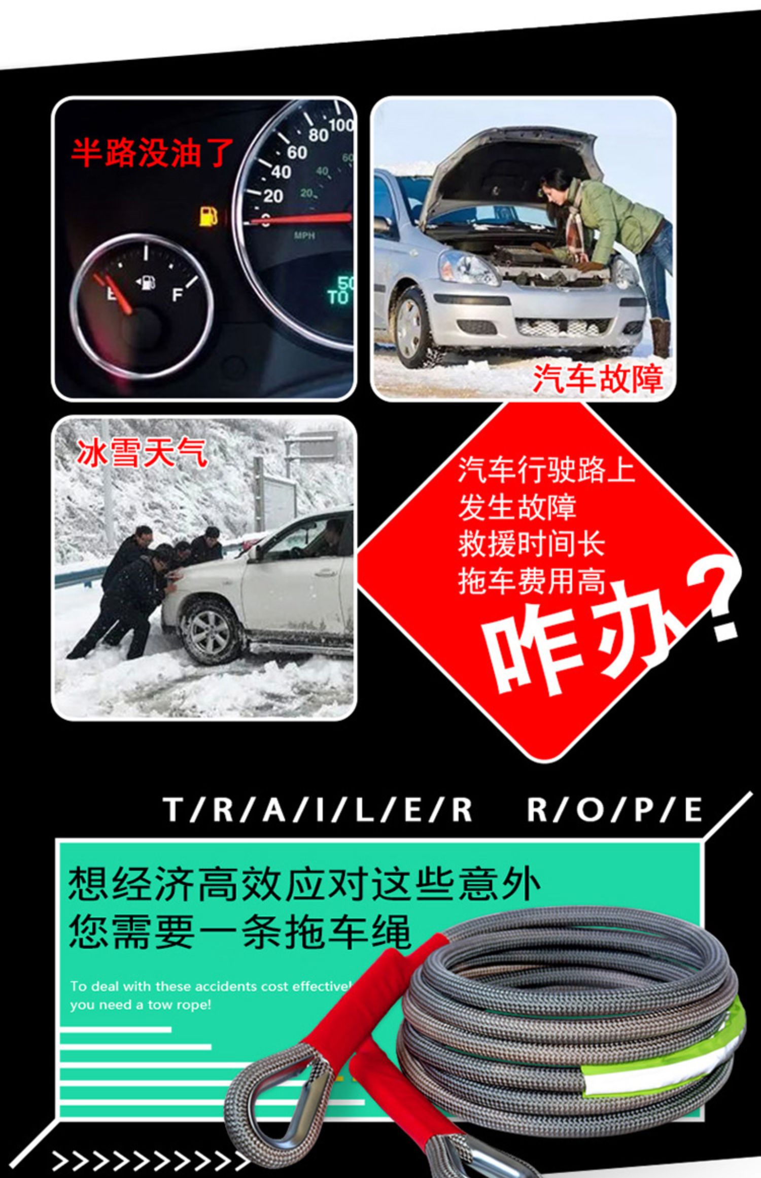 - ¥50.004米10吨【中号美式钢钩+反光带+收纳袋】家用SUV专用