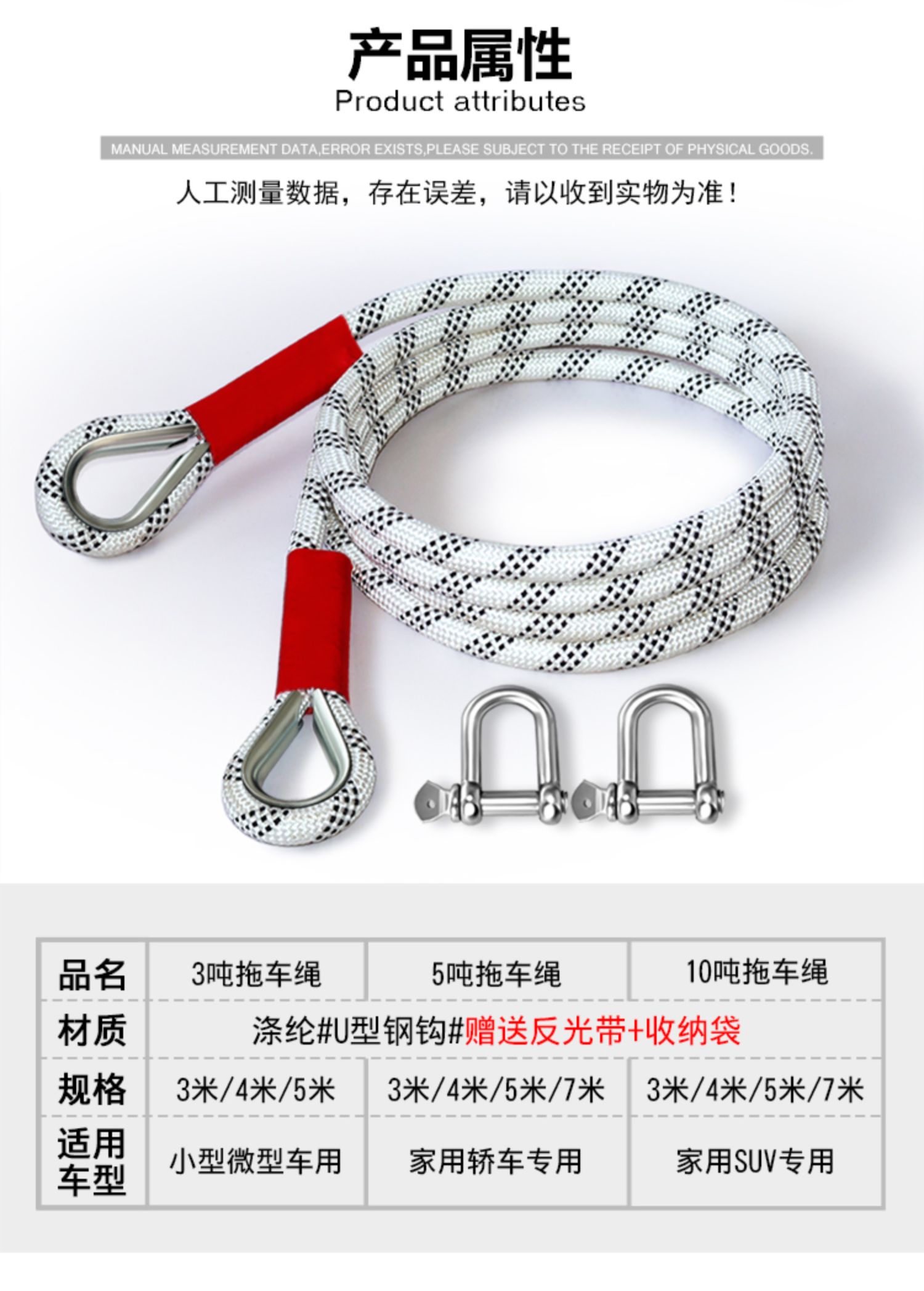 - ¥65.007米10吨【中号美式钢钩+反光带+收纳袋】家用SUV专用