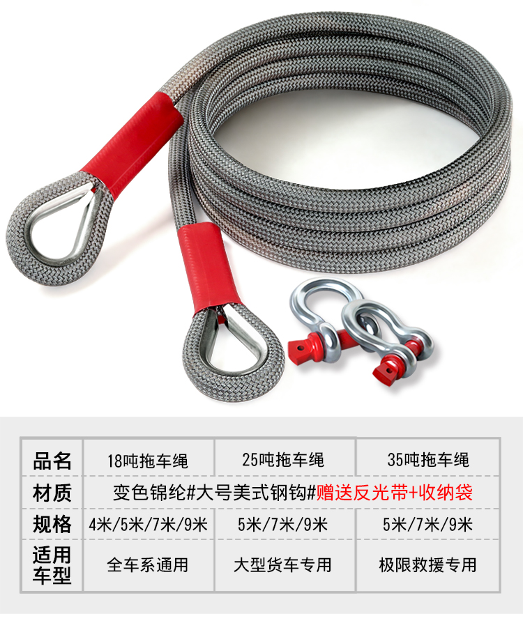 - ¥218.00100%全锦纶5米35吨弹力绳钢扣款【极限越野大货车通用】