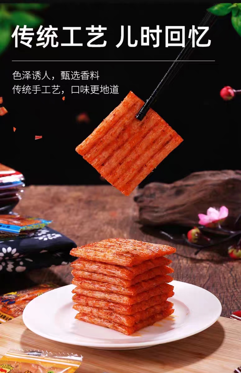 这款麻辣条辣片真的很不错,味道很正宗,口感也很好,价格也很实惠,值得购买。这款小面筋大刀肉零食品尝起来非常美味,而且价格也很合理,适合那些喜欢辣味零食的人。