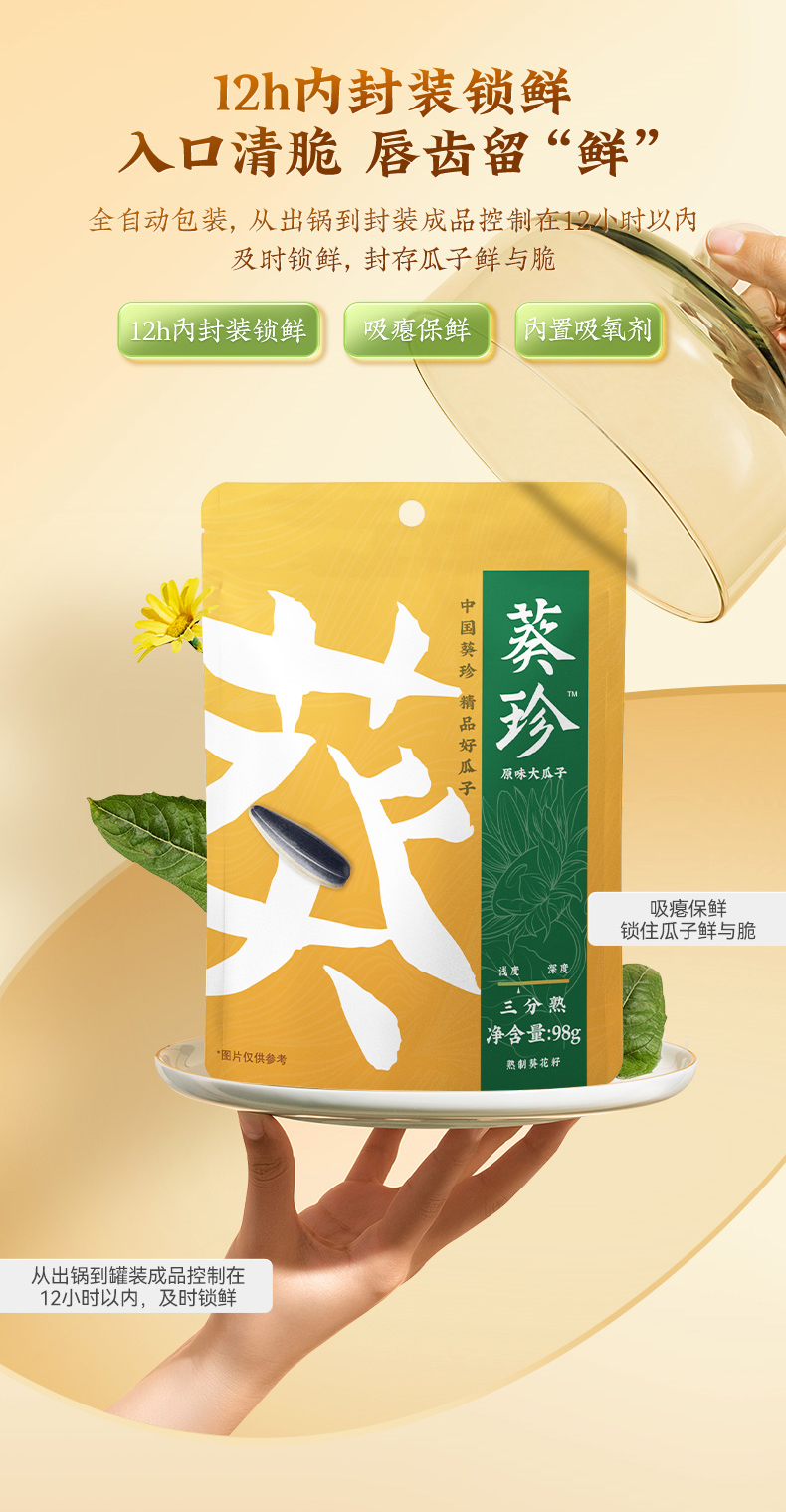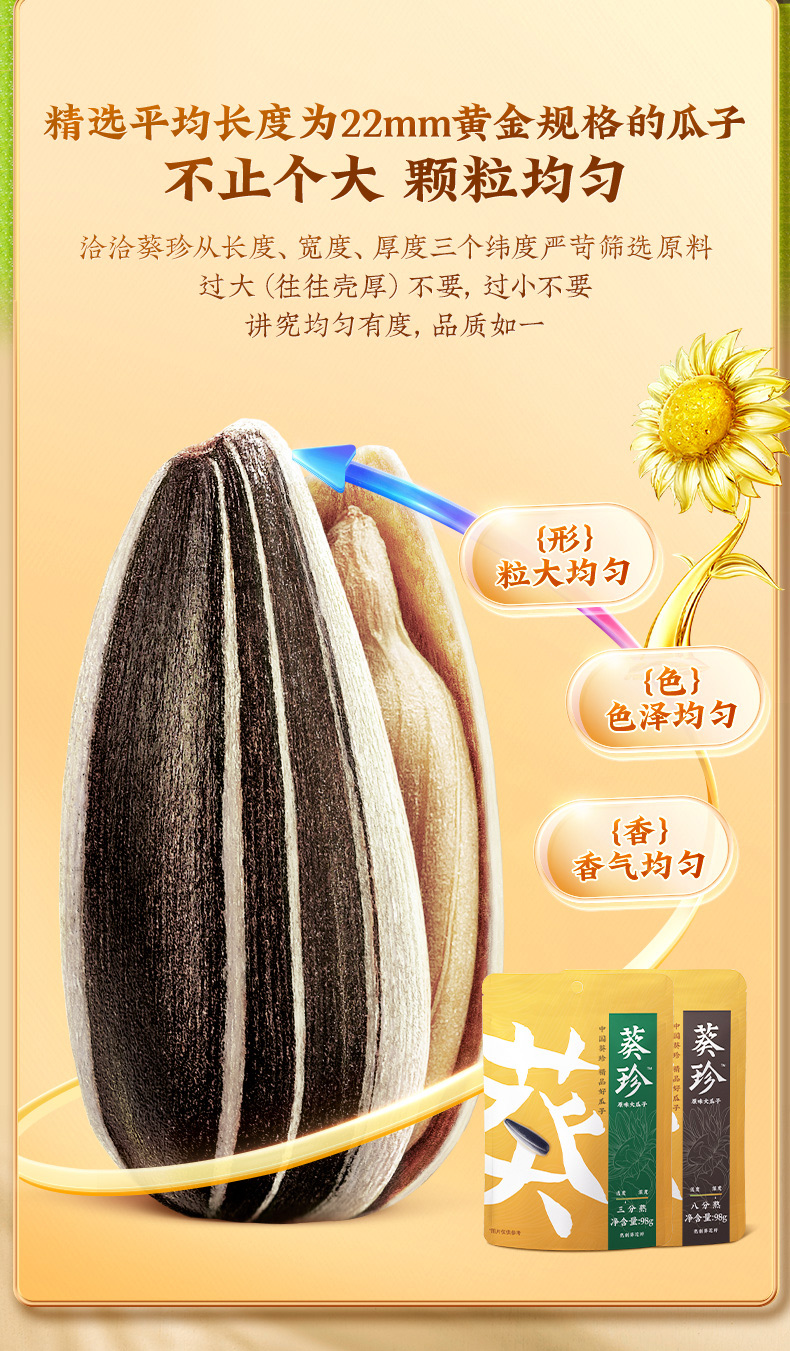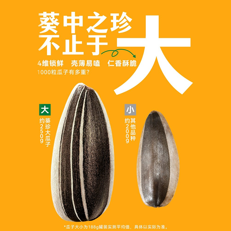 葵珍葵花籽瓜子|颗粒饱满人工严选无坏籽 香脆分享98g*4袋装
