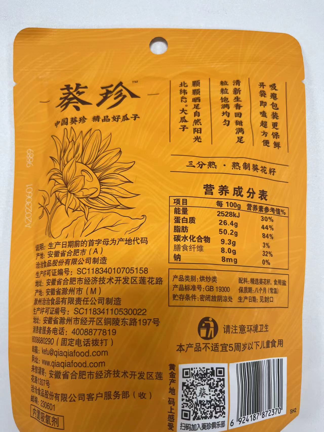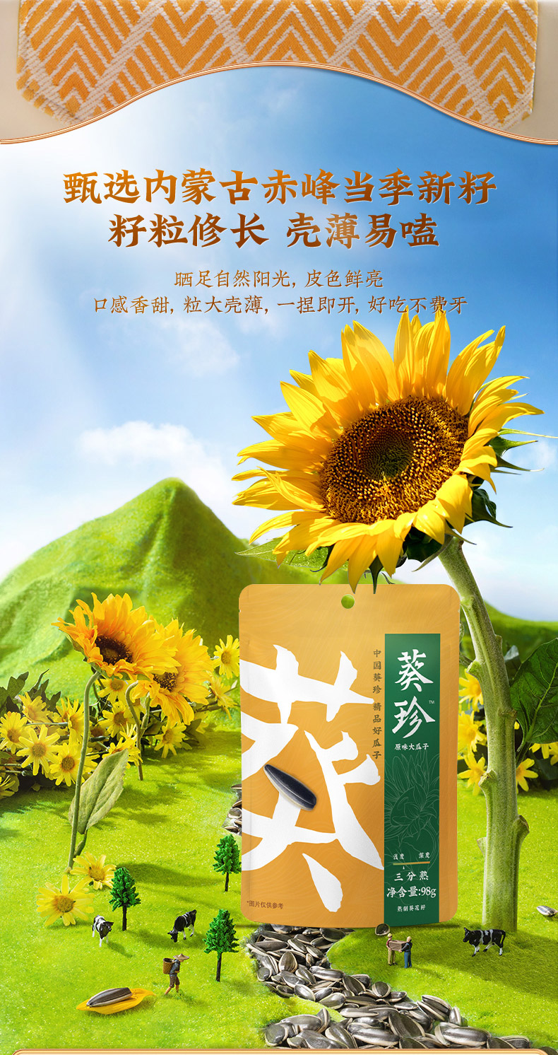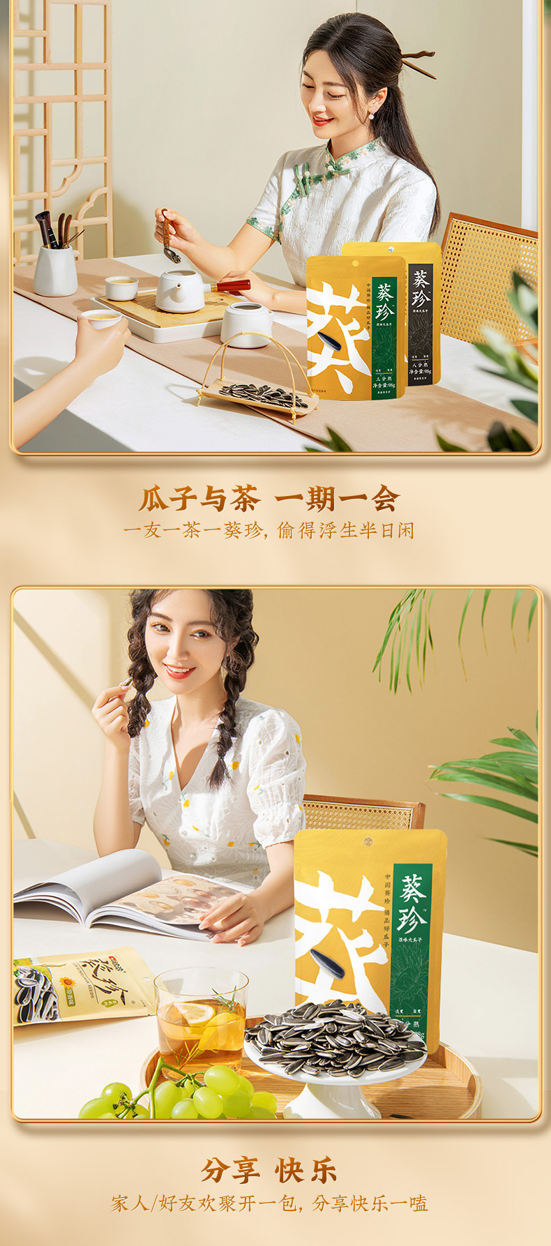 葵珍葵花籽瓜子|颗粒饱满人工严选无坏籽 香脆分享98g*4袋装